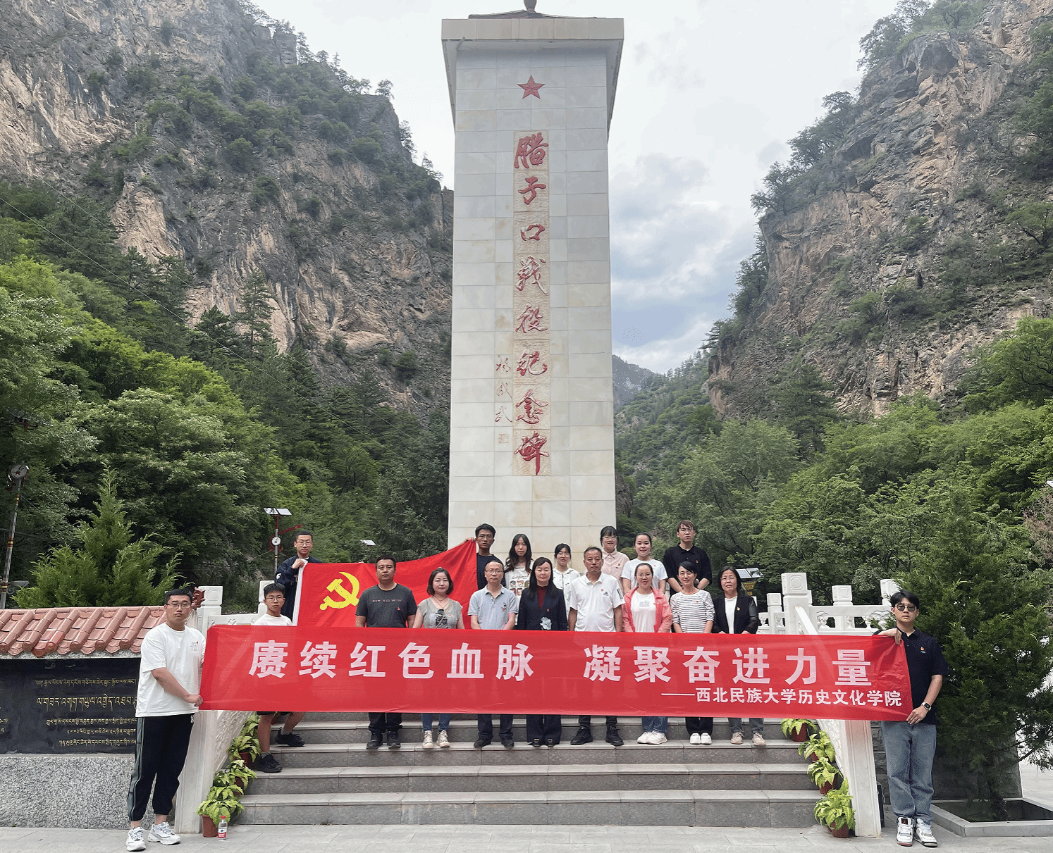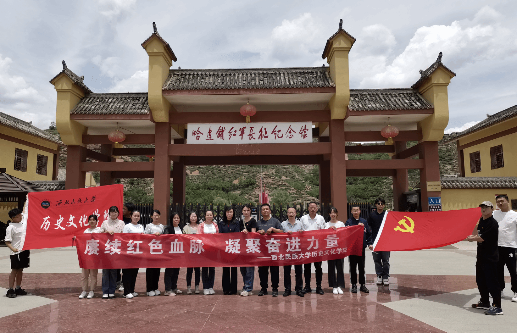 党委组织19名师生党员及积极分子于2023年6月10日-11日赴哈达铺红军长征纪念馆、腊子口战役纪念馆开展“赓续红色血脉,凝聚奋进力量”主题党日活动,大力弘扬伟大建党精神 ,团结奋斗走好新时代的长征路,深刻领悟哈达铺是红军长征途中的“加油站”,是红军长征的重要转折点的真正含义,从党的历史中汲取智慧和力量。