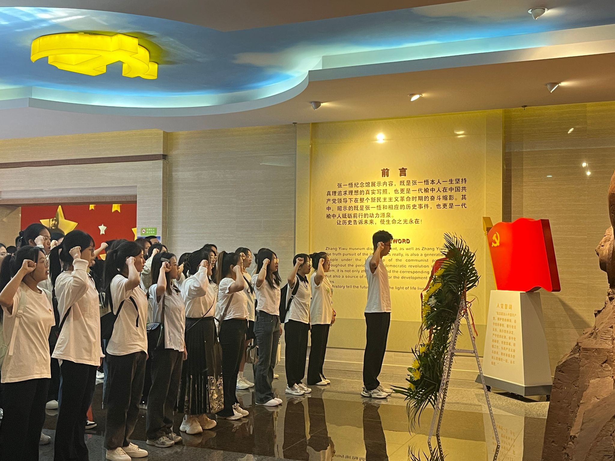 参观伊始,全体党员向烈士敬献了花篮,并在纪念像前默哀鞠躬。在党旗下,全体党员同志进行了庄严宣誓,在铿锵有力的宣誓声下,大家的思绪逐渐被拉回了那个激荡的年代。跟随讲解员的脚步徐徐前行,师生深入了解张一悟烈士的生平事迹,观摩了他在中国革命历史进程中的重要地位和作用,一封封泛黄的书信、一件件陈旧的衣物、一幅幅生动的剪影,见证了革命年代革命先驱们为革命理想不懈奋斗的历史。