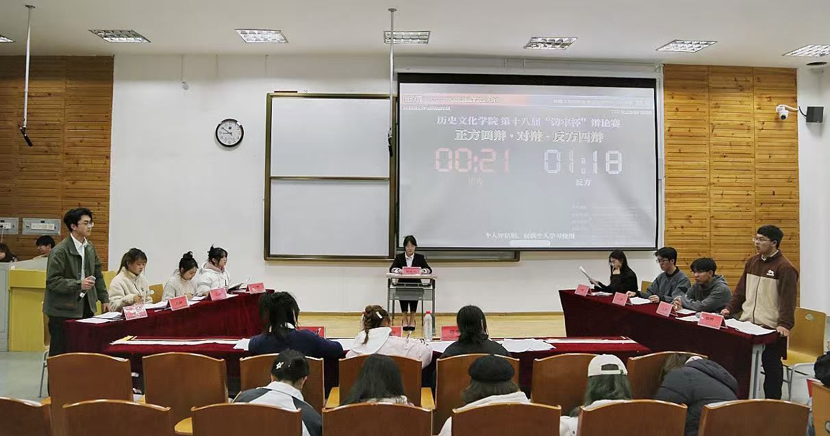 本次辩论赛的辩题紧扣时代热点和历史文化主题,兼具思想性和现实意义。从“人工智能的发展对人类文化传承是机遇还是挑战”到“历史研究应更注重宏观叙事还是微观细节”等,这些辩题引发了选手们的深入思考和激烈讨论,也让观众们在欣赏精彩辩论的同时,对时代发展和历史文化有了更深刻的认识。 比赛现场气氛热烈,尽显辩手们朝气蓬勃的风貌,他们凭借敏捷的思维为现场师生呈现了一场场扣人心弦的角逐,他们旁征博引,运用丰富的历史知识和现实案例,为自己的论点提供了坚实的支撑,以论明理,妙语交锋。点评阶段,评委们既肯定了选手们的优点和亮点,也指出了存在的问题和不足之处,并提出了宝贵的改进建议。