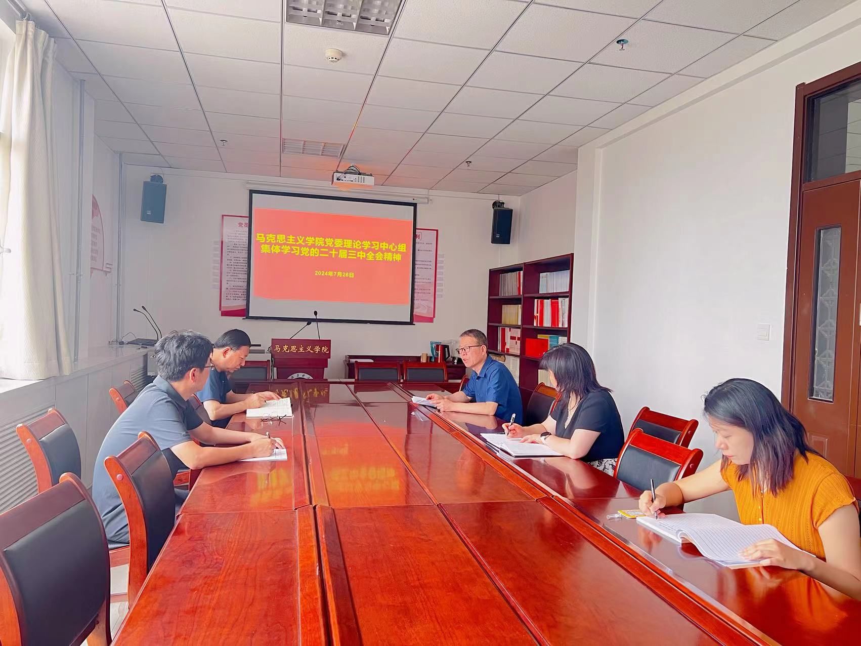 会议要求中心组成员、各党支部、全体思政课教师认真研读党的二十届三中全会公报、 决定、 说明、 诞生记等重点内容;要利用暑期大练兵和集体备课机会,以教研室为单位组织学习,把全会精神有机融入备课之中,扎实推进“三进”工作,特别是《习近平新时代中国特色社会主义思想概论》课备课中要把习近平总书记关于全面深化改革的系列新思想、新观点、新论断补充进来,《形势与政策》教研室要按照中央宣讲要求,提前开展准备工作,加强集体备课;提前做好党的二十届三中全会学习辅导材料的配备工作。