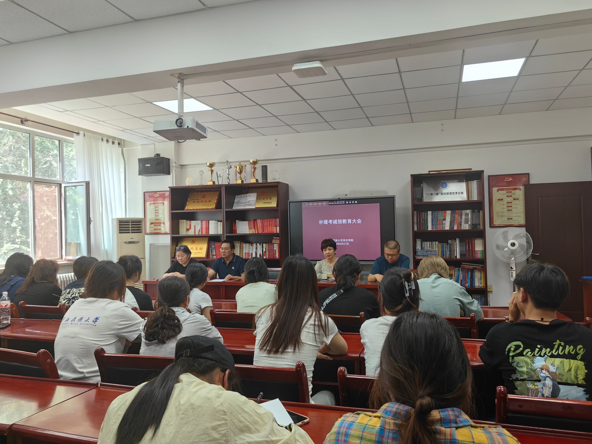 通过此次会议,希望每位补(缓)考同学努力复习、珍惜机会,都能把“以诚信应试为荣,以考试舞弊为耻”铭记在心,诚信做人,用真实可信的成绩展示学习效果,做崇尚诚信的好青年。