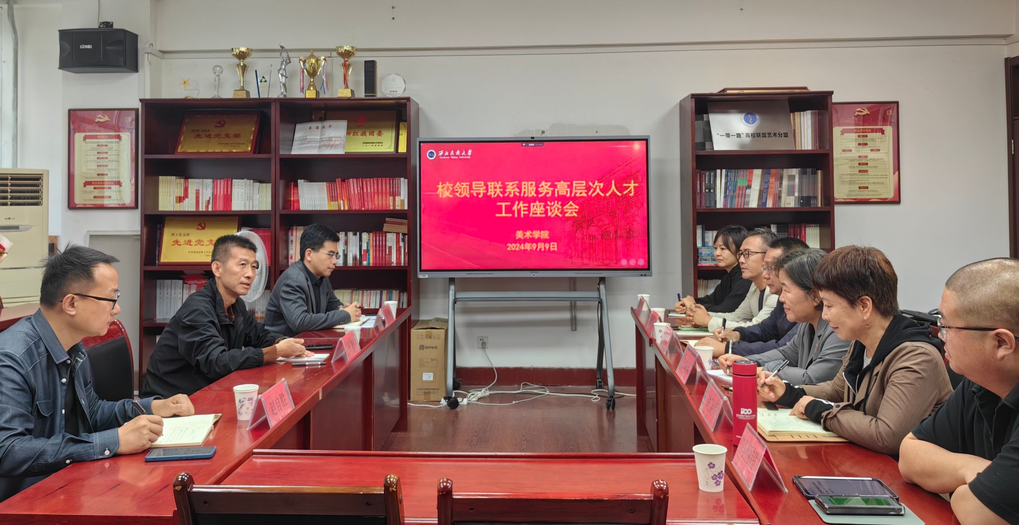 9月9日上午,在第40个教师节来临之际,红黑游戏 党委常委、纪委书记杨晓带队赴美术红黑游戏 走访慰问部分高层次人才,并召开座谈会。红黑游戏 相关部门及红黑游戏 领导班子参加座谈。