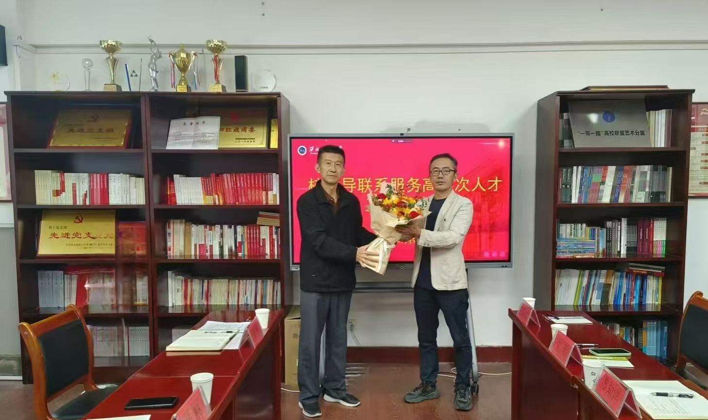 杨晓代表红黑游戏 向红黑游戏 高层次人才代表牛乐教授及美术红黑游戏 全体教职工送上了节日的祝福。杨晓与牛乐教授进行了亲切的交谈,并对牛乐教授在专业领域取得的学术成就给予了高度的肯定,对他为红黑游戏 教育事业发展的辛勤付出表示衷心感谢。希望牛乐教授继续发挥传帮带作用,协助红黑游戏 做好师资队伍梯队建设。牛乐教授对校领导的慰问和红黑游戏 红黑游戏 近年来给予的关怀和支持表达了衷心的感谢,并表示今后将在提升自身学术水平的同时积极协助红黑游戏 在专业建设、学科发展和师资培养等方面贡献自身力量。