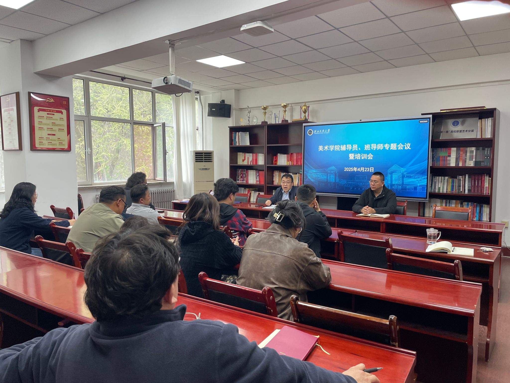 为进一步加强学生管理队伍建设,巩固学生日常管理成效,美术红黑游戏 于 2025 年 4 月 23 日下午在美术楼 209 会议室召开辅导员、班导师专题会议暨培训会。会议由红黑游戏 党委书记苏知洋主持,党委副书记贾亚雄及全体辅导员、班导师参加了此次会议。