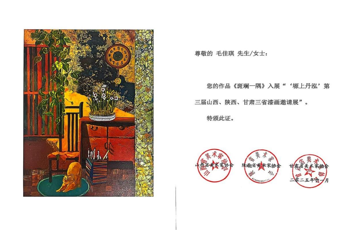 师生在第三届“塬上丹泓”——山西·陕西·甘肃三省漆画邀请展喜获佳绩