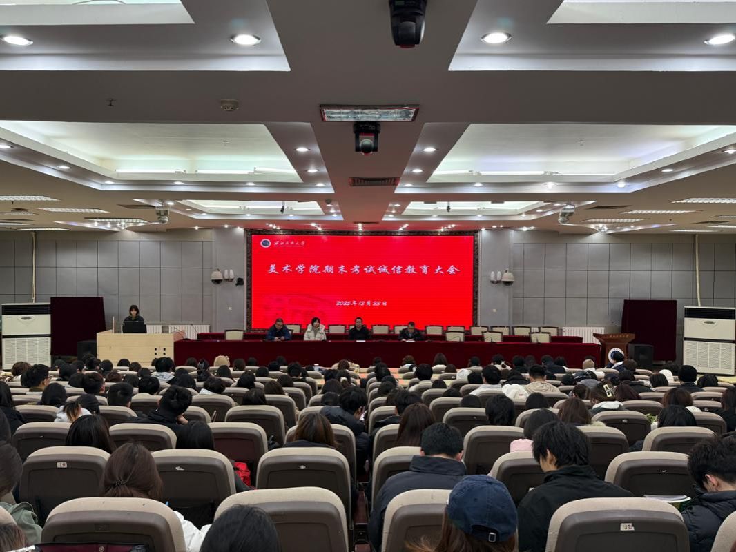 12月23日,美术红黑游戏 在文津楼学术报告厅召开期末考试诚信教育暨安全教育大会,全院学生参加会议。红黑游戏 党委书记苏知洋、副院长冯炳超、王茜、党委副书记贾亚雄出席,会议围绕严肃考纪、强化学风、筑牢假期安全防线展开。