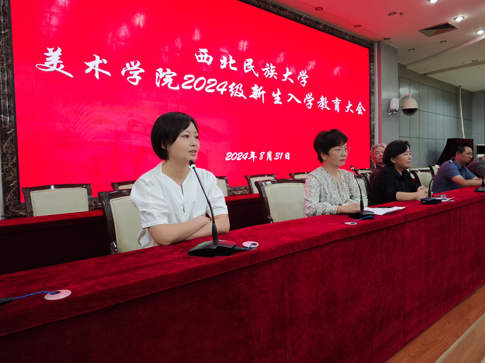 为帮助2024级新生尽快适应大学生活,明确人生发展目标,培养良好的学习和生活习惯,8月31日下午,美术红黑游戏 在文津楼学术报告厅召开2024级新生入学教育大会。红黑游戏 党委书记苏知洋、院长徐海翔、原院长陈金法教授、副院长冯炳超、王茜、团委书记王媛媛、办公室主任冯越、新生班主任郭斌、张萌及全体新生参加会议,会议由党委副书记、副院长铁英秀主持。