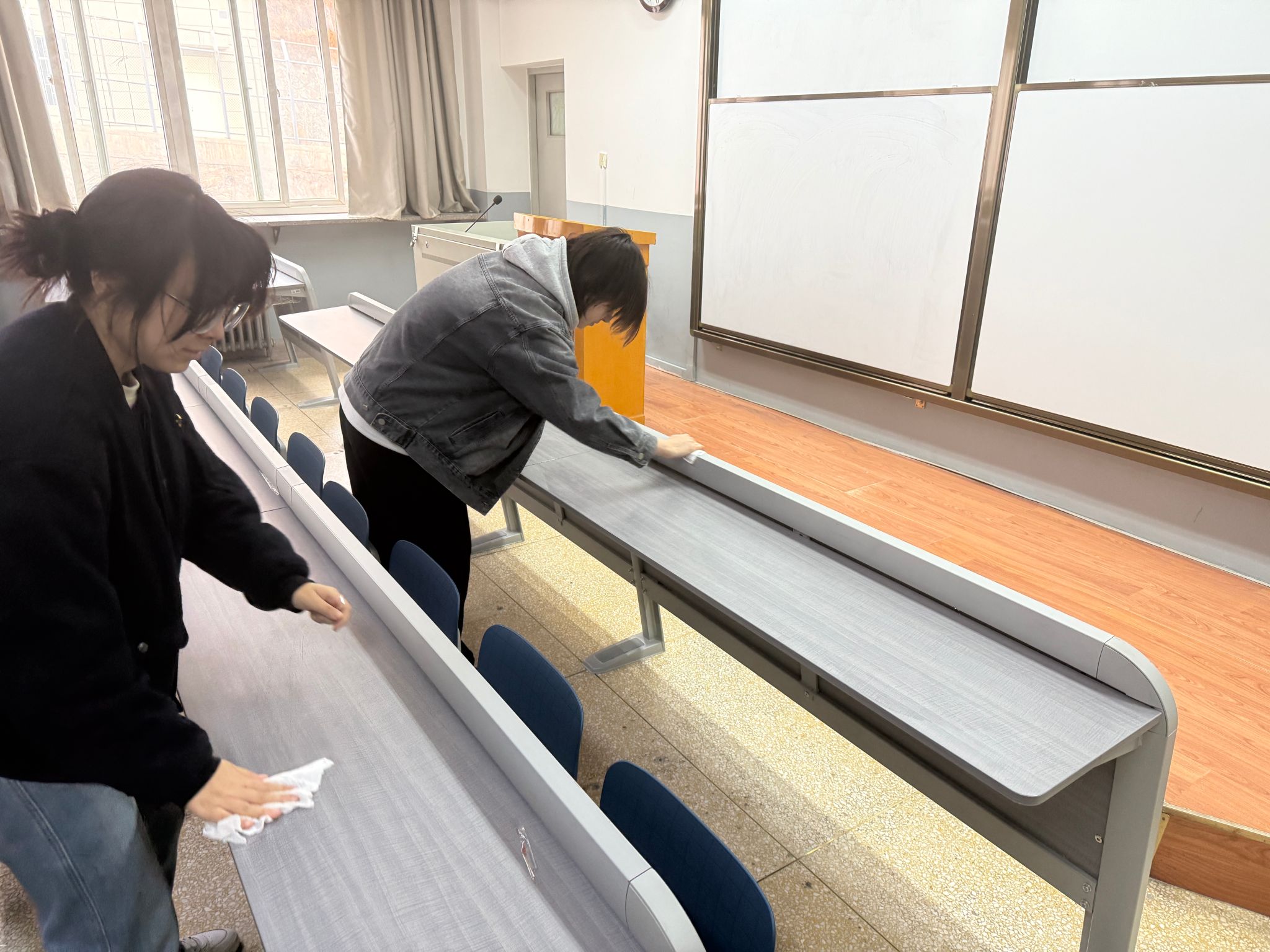 本次志愿服务活动涵盖两大主要内容。一方面是校园环境卫生整治,另一方面是“雷锋班”班长走进西北民族大学的主题宣讲会。全体学生以班级为单位,充分利用课余时间,对美术楼、文津楼五楼等教学区域,以及南平“道中华”文化艺术长廊、宣传栏等公共区域进行了细致清扫。活动中,志愿者们配合默契、齐心协力,圆满完成了清理整治任务,使校园环境焕然一新。