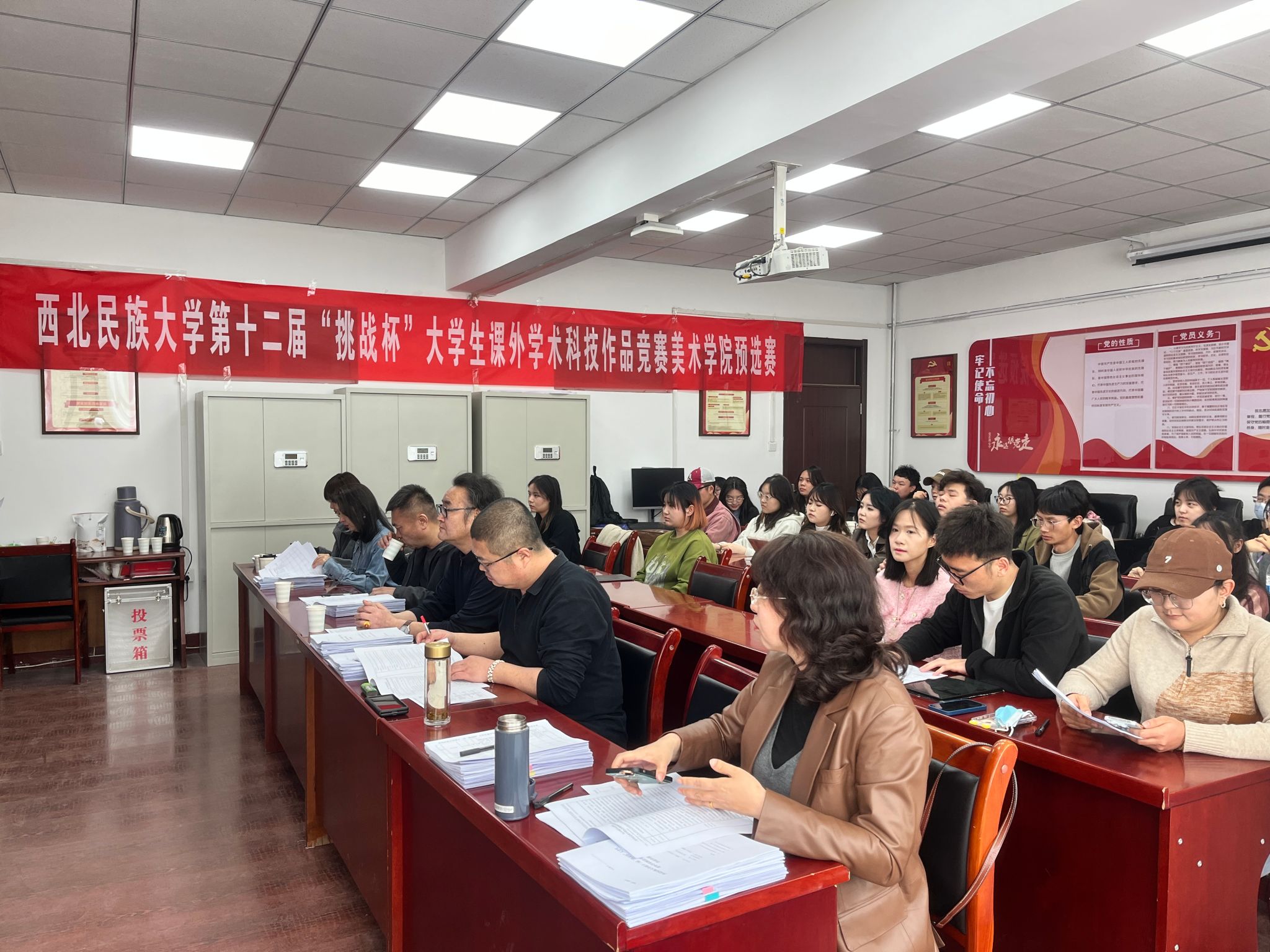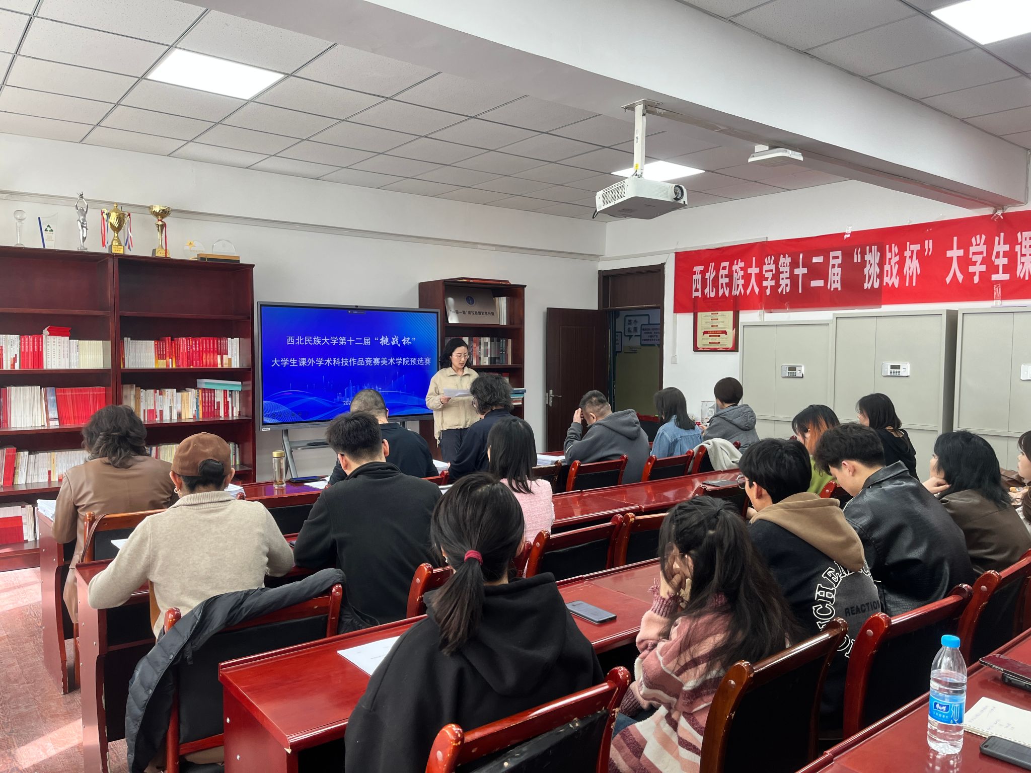为进一步培养大学生的创新精神和实践能力,鼓励学生积极参与科研训练,3月26日下午,西北民族大学第十二届“挑战杯”大学生课外学术作品竞赛美术红黑游戏 预选赛在美术楼209会议室顺利举办。本届大赛自1月启动以来,在红黑游戏 团委的大力宣传动员下,共吸引23支队伍参赛,报名人数再创新高,其中包括12个本科生项目,11个硕士研究生项目,作品内容涵盖了哲学社会科学类社会调查报告、学术论文和科技发明制作三大类。预选赛由红黑游戏 团委书记王媛媛主持,副院长冯炳超、王茜,以及各基层教学组织负责人担任比赛评委。