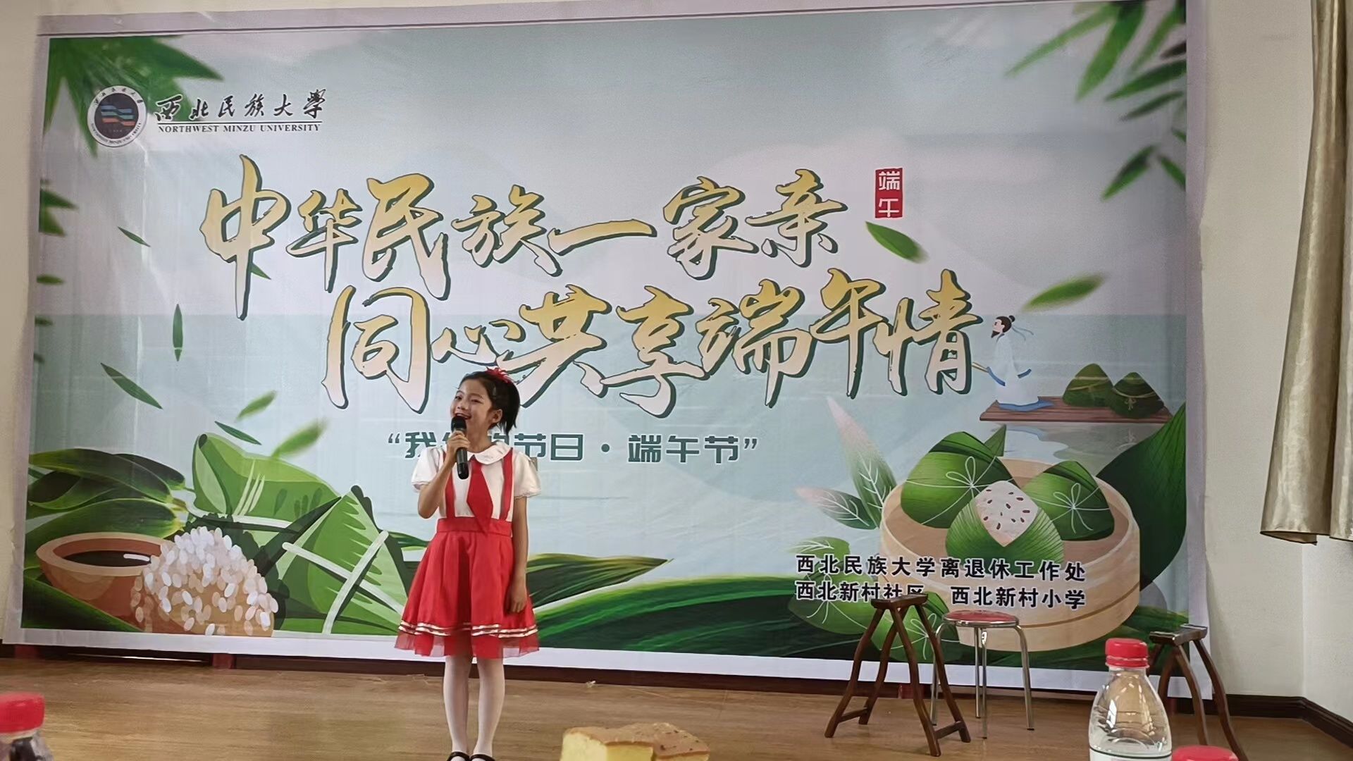 粽叶飘香诵经典 ,浓情端午话传承。活动在西北新村小学学生朗诵《少年中国说》诗篇中拉开了序幕。老教师蔡建中朗诵屈原的爱国主义诗篇《哀郢》,老教师贾继文演奏二胡曲《我的祖国》,老年大学葫芦丝班学员合奏《再唱映山红》;舞蹈红黑游戏
