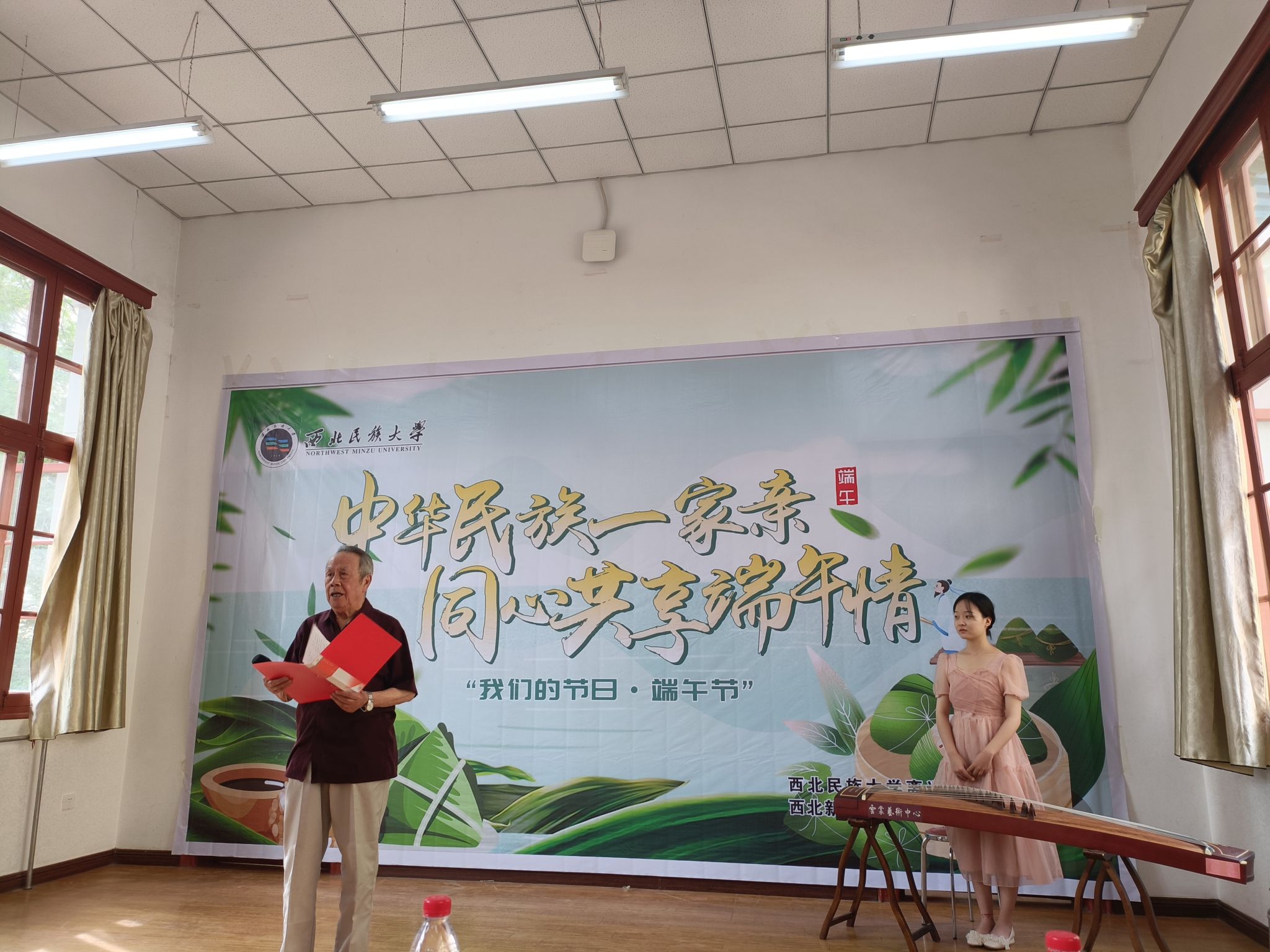 “五老”代表及离退休教职工、青年大学生代表和西北新村小学少先队员一起传颂爱国主义经典诗篇,共同包粽子、编彩绳、学习俗,度过一个有情怀、有诗意、有温度的端午佳节。校党委副书记、副校长玉苏甫江,西北新村社区负责人,校工会、离退休工作处全体职工参加了活动。