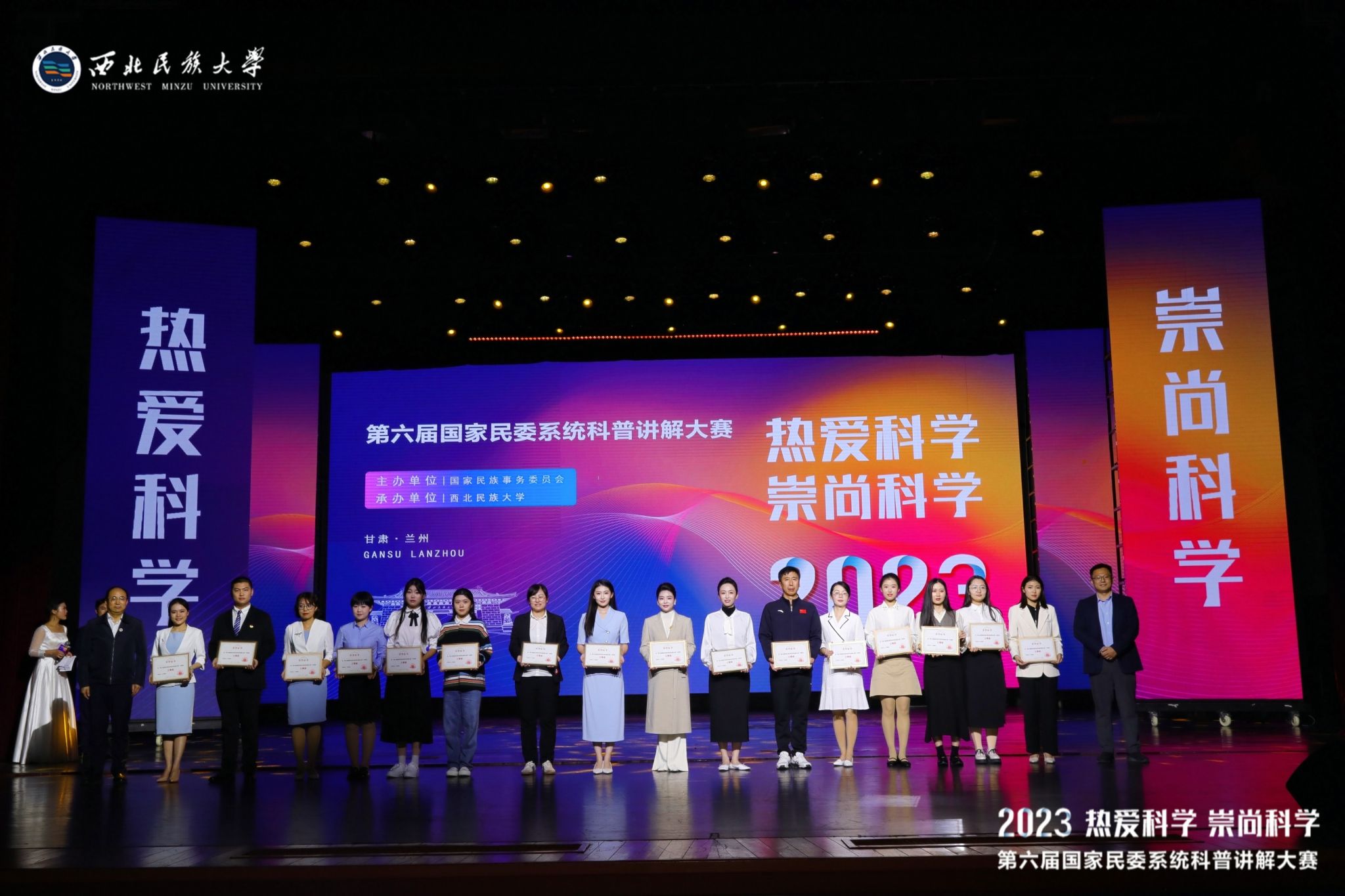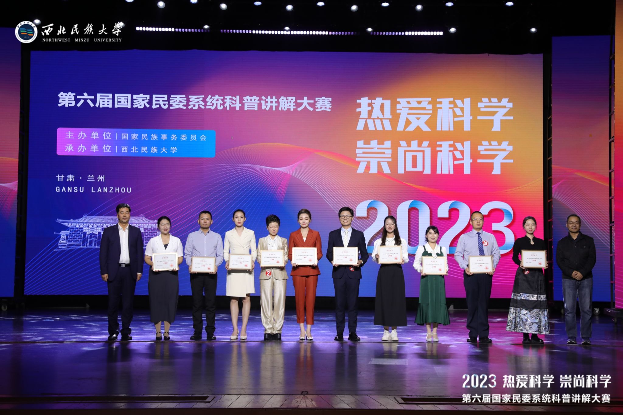 大赛共有来自国家民委直属六所高校和中国民族博物馆的32名选手参加比赛。比赛中,选手讲解题目丰富多元、精彩纷呈,涵盖数学、物理学、化学、生物学、地理学、信息技术、医学等多个学科,涉及人工智能、新材料、物联网等科技前沿热点,贴近疾病防治、口腔健康、二维码等人们日常生活中的热门话题。参赛选手以新颖独特的视角,通过视频展示,综合运用影像、音乐和动画等各种多媒体手段及实物道具等,将原本深奥的科学原理变得生动有趣、通俗易懂,赢得了现场观众的阵阵掌声,让观众们在领略和感受到科学的魅力和科技蓬勃发展的同时,充分展现了民委系统干部职工、高校师生的良好精神风貌和新时代科普工作者的卓越风采。