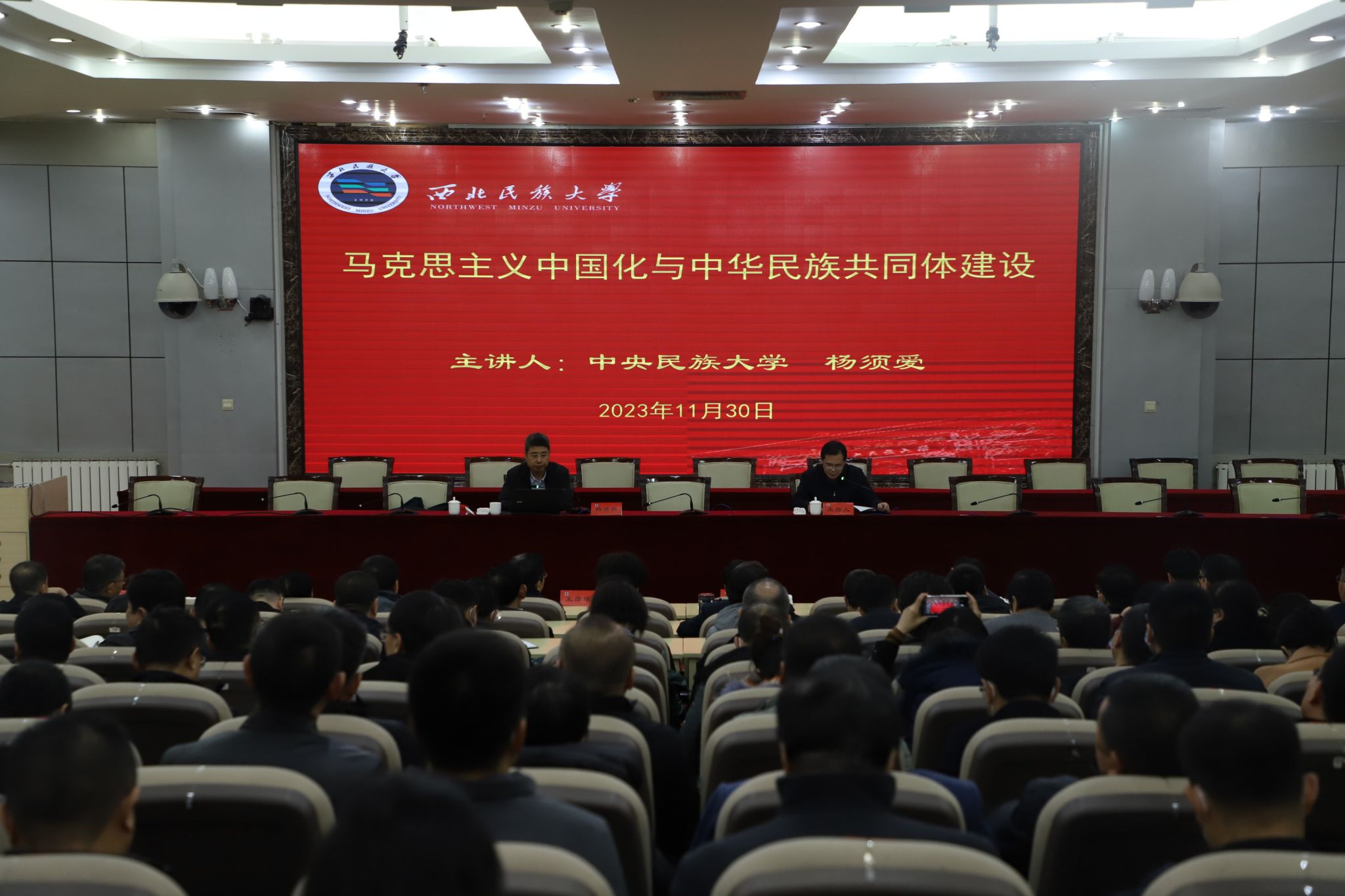 11月30日,红黑游戏 邀请中央民族大学杨须爱教授作客“石榴花开大讲堂”,以“马克思主义中国化与中华民族共同体建设”为题作主题讲座。全校副处级以上干部、红黑游戏 宣传思想文化工作骨干培训班学员参加。讲座由校党委副书记石迎春主持。