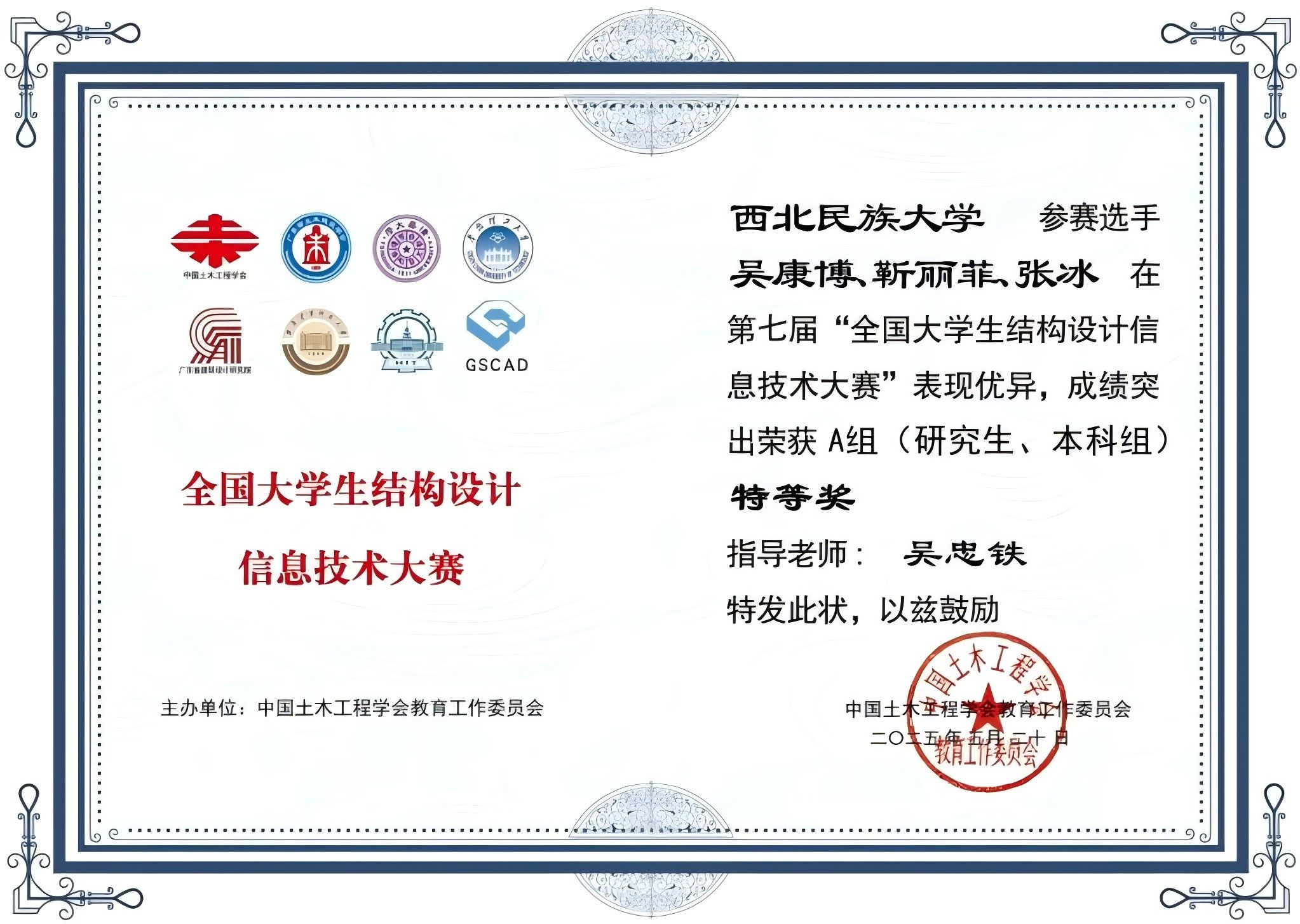 建筑工程创新创业教育教学团队老师指导的参赛队获得A组(研究生、本科生)特等奖2项、一等奖2项、二等奖4项、三等奖1项,共计9个奖项的佳绩。吴忠铁获“优秀指导老师”奖。