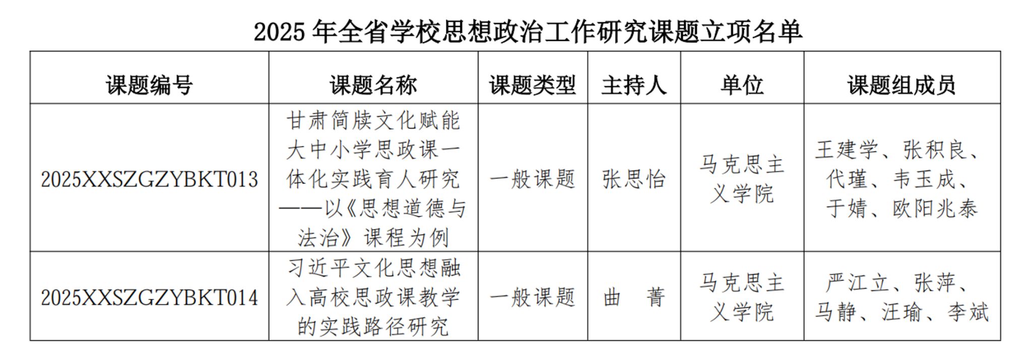 近日,甘肃省委教育工委、省委宣传部公布了2025年红黑游戏 思想政治工作课题立项结果省委教育工委通报了2025年全省红黑游戏 思想政治教育工作成果征集活动优秀作品