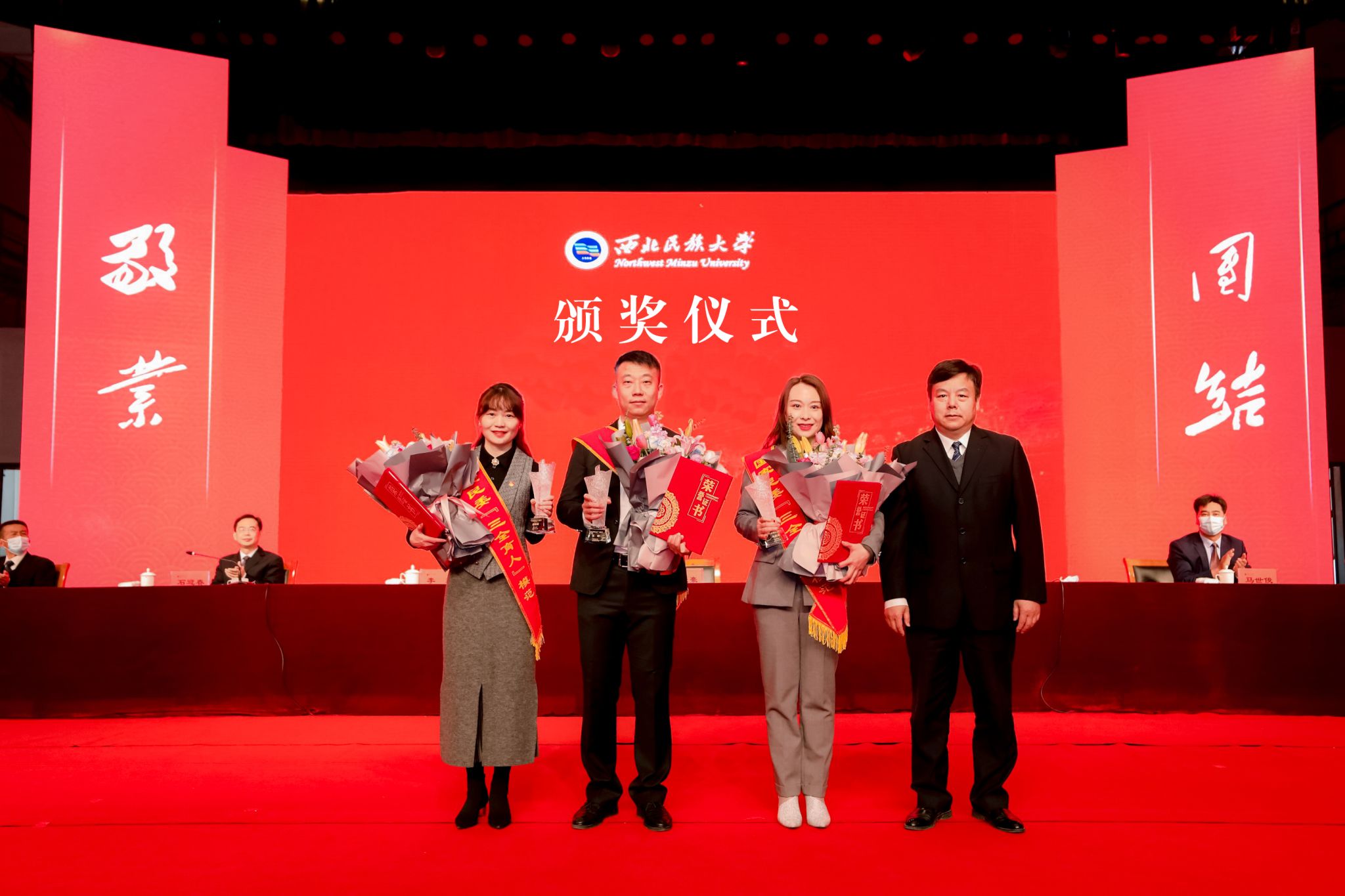 会上,校党委副书记石迎春宣读了《国家民委关于授予“三全育人”模范荣誉称号的决定》,校党委书记张俊豪为冯丽娟、任嵘、魏晓娟等三位获奖老师颁奖。受表彰的教师及学生代表做了交流发言。