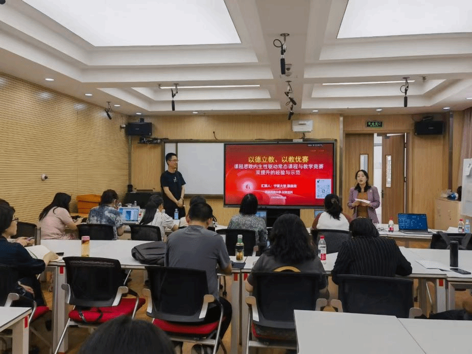 张启龙教授以"以德立教、以教优赛:课程思政内生性驱动常态课程与教学竞赛双提升的经验与示范"为主题,通过"破题-升华-落地"三个维度展开讲座。首先,系统阐述了教学竞赛与课程思政在育人目标、教学设计等方面的内在关联;其次,结合全国教学竞赛获奖案例,生动展示了如何将竞赛经验转化为日常教学的思政育人资源;最后,针对高校课程思政建设中的重点难点问题,提出了具有可操作性的解决方案。整场讲座既有高屋建瓴的理论指引,又包含丰富的实践案例,为参训教师开展课程思政建设和参加教学竞赛提供了宝贵的经验借鉴。