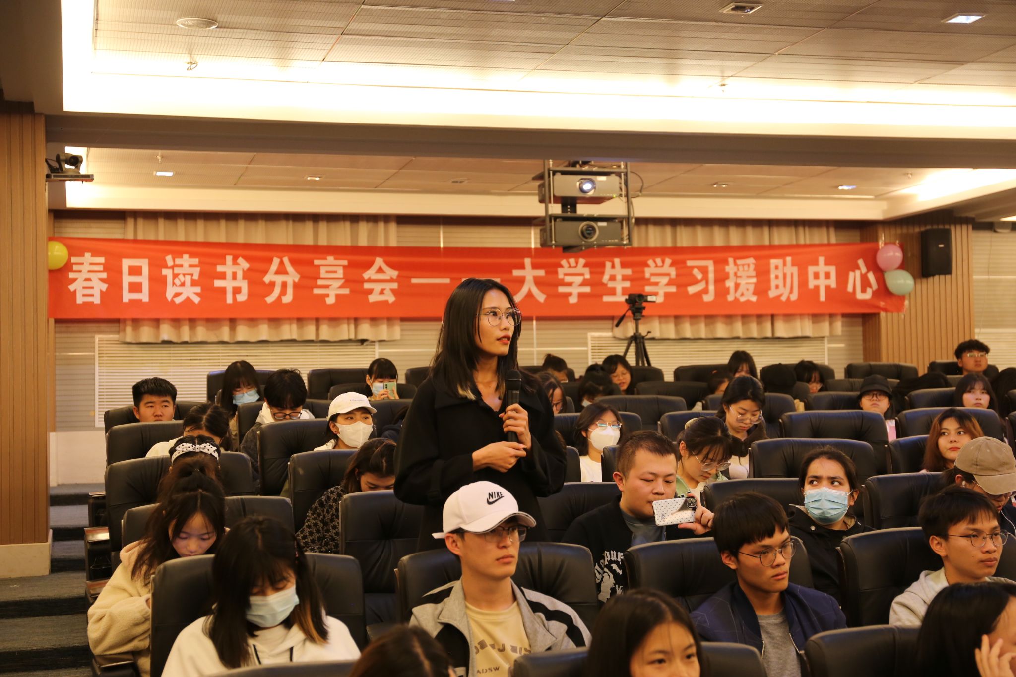 的20位同学依次上台分享了自己所喜爱书籍的读书心得与感悟,现场听众就自己的收获感想与分享者进行了交流探讨。