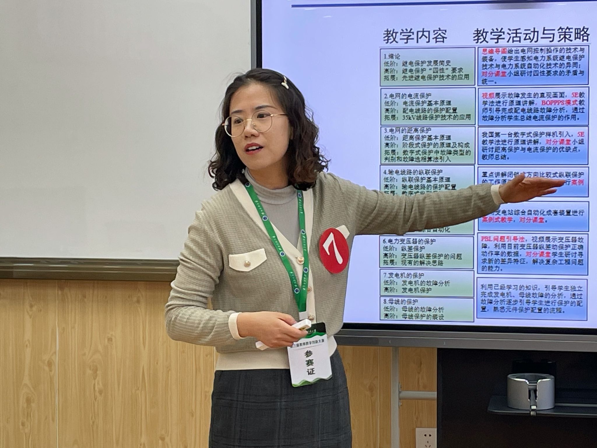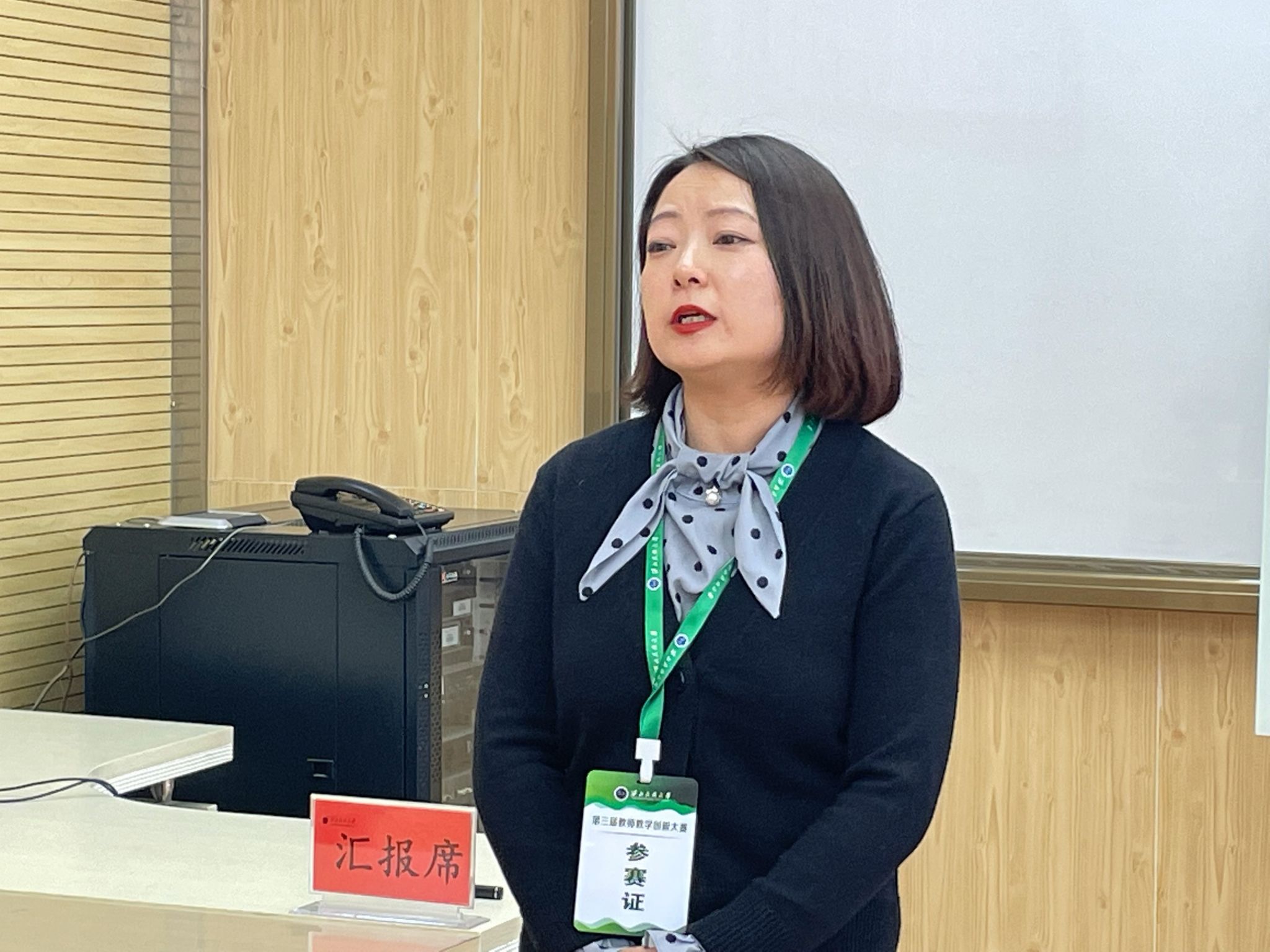 网络评审阶段由各位专家对参赛教师的课堂教学实录视频、教学创新成果报告等材料进行评审打分。现场评审阶段,参赛教师结合教学大纲与教学实践进行教学设计创新汇报,参赛教室能紧扣大赛主题,深挖教学痛点,如何攻克教学难点,突出教学重点等,汇报了课程教学创新思路及具体实施举措,充分展现了自身的教学素养和教学创新能力。