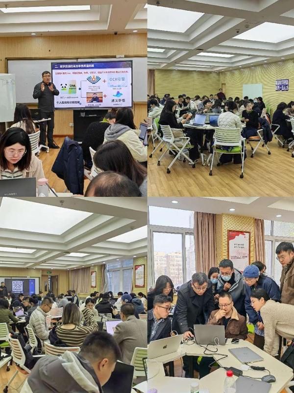 实战环节干货十足,张老师梳理 AI 融入教学的 “五个途径”,现场指导老师们实操体验 12 款实用工具。从教学设计到视觉呈现,老师们分组尝试用工具快速生成教学案例、设计流程图、创建概念图,亲身感受 AI 从抽象概念变为提升备课效率、丰富课堂表现力的得力助手,现场俨然成为充满探索精神的 “AI 体验工坊”。