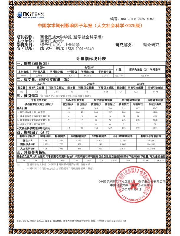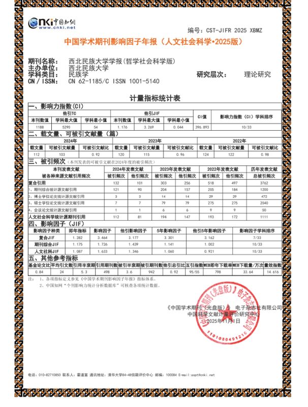 学报(哲学社会科学版)》无论是在民族学学科类目,还是综合性人文、社会科学学科类目中,影响因子均持续提升,期刊的学术影响力也进一步增强。
