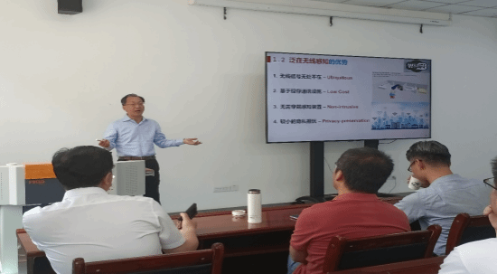 张大庆教授从泛在无线感知面临的问题和挑战谈起;接着深入浅出地阐释了以菲涅尔区模型(Fresnel Zone Model)为基础构建的通用感知模型、理论和技术,揭示了大多基于RF信号无法稳定工作的原因;然后展示了团队研发的基于Wi-Fi的无接触呼吸监测、手势识别等一系列应用于居家养老、医疗康养场景的原型系统;最后与参会老师和学生进行了认真交流,解答了师生们关于WIFI应用、普适计算发展前景和技术安全性等方面的问题,参会师生受益匪浅。