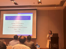 数学专业研究生张濠天、李丹阳、蔺晓芬、朱鑫杰、卓尕吉、刘春亚、董玉蓉、岗吉卓玛、张乐、李奥奇参加了此次会议。其中,李丹阳作了题为《Complex dynamics analysis and simulation of Allee effect predator-prey model with delay》的报告。通过此次会议学习,使她们了解了领域前沿思想、启发了科研思路、促进了同行之间的分享与交流,收获颇丰。