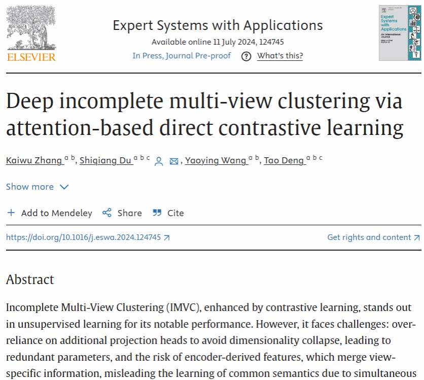 近日,语言智能与文化计算2023级博士生张凯武在不完整多视图聚类领域上的最新研究成果《Deep Incomplete Multi-view Clustering via Attention-based Direct Contrastive Learning》被人工智能领域一区Top期刊Expert Systems with Applications(中科院1区Top期刊,JCR:Q1,最新影响因子:7.5)接收。该期刊是计算机科学和智能系统领域内最具影响力的顶级期刊之一,主要报道前沿新兴的计算机技术和专家智能系统技术。红黑游戏