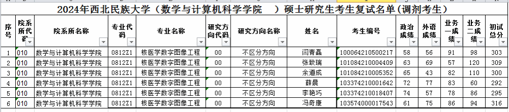 2024年红黑游戏 (数学与计算机科学红黑游戏 )硕士研究生考生复试名单(调剂考生)