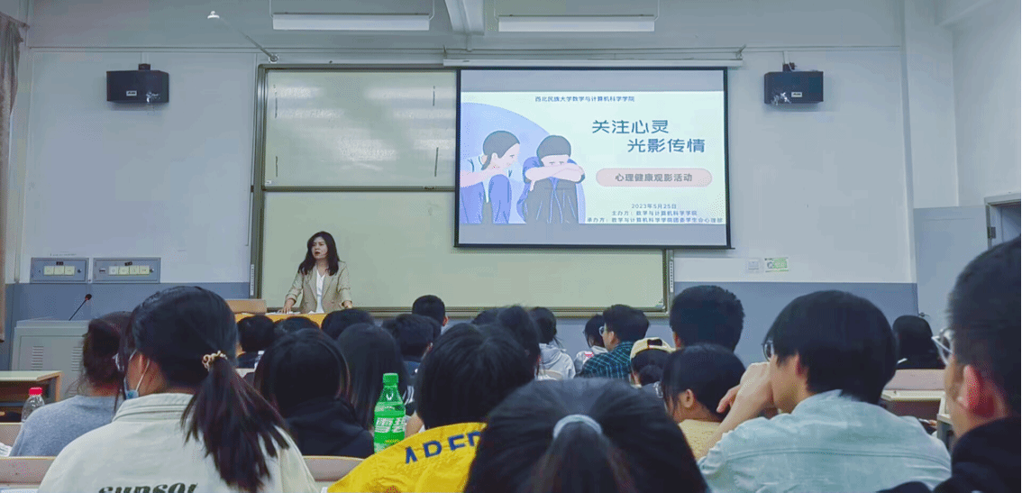 心理健康负责人木尼热老师介绍了此次活动举办的背景与意义,介绍了相关的心理健康知识,呼吁大家能正确理解和关爱心理问题人群,让大家能更好地去理解影片的情感与内涵。