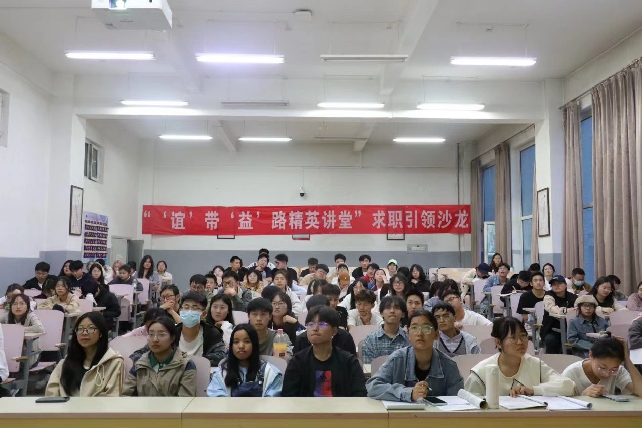 于5月9日晚在榆中校区致真楼106举办了“‘谊’带‘益’路——精英讲堂”暨校友助力·“职”等你来沙龙。本次活动邀请了2018届和2023届的两位优秀毕业生分享交流,铺导员王燮同以及100余名在校生参加。