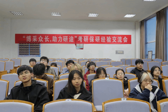 首先,由五名优秀毕业生分享交流自己的考研保研经历。从学习、生活、综合实践等多方面对同学们进行有益指导,为芊芊学子考研保研助力。优秀毕业生们的经验传授,不仅为同学们提供备考思路,而且激发了同学们的学习动力。而后,在优秀毕业生分享完经验后,同学们向优秀毕业生们自由提问,咨询关于考研与保研的细节,明确自己努力的方向。面对同学们的提问,优秀毕业生一一解答,并提出了宝贵的建议与鼓励。