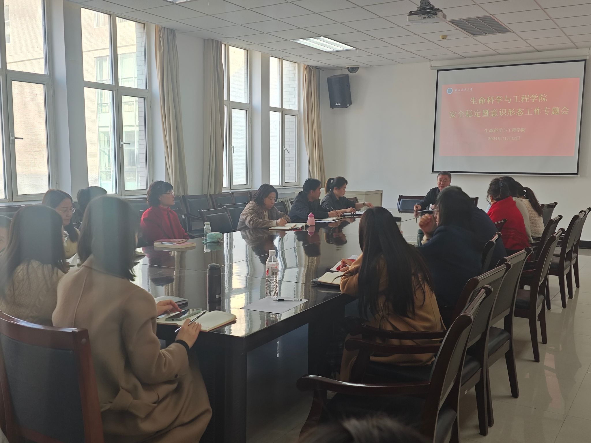 近期安全稳定、意识形态领域问题,分析研判风险隐患,研提工作举措及建议。各系、党政管理人员代表围绕安全稳定、意识形态结合工作实际作交流发言。