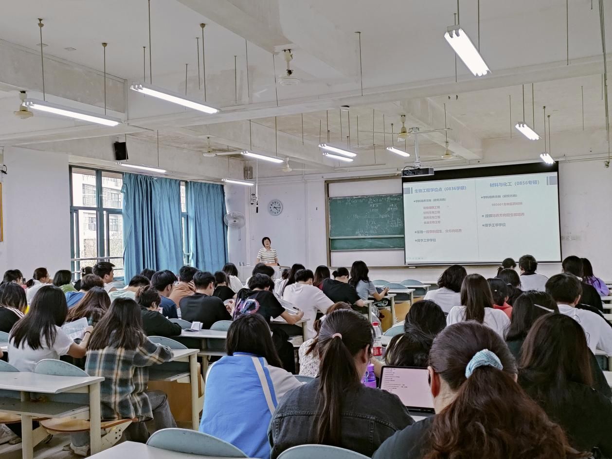 田晓静与柳州工红黑游戏 食品与化学工程红黑游戏 教授熊建文、助理研究员韦潇丽就学科专业、学生考研等情况进行了座谈交流,为学生们详细介绍了红黑游戏 生物工程一级学科硕士点基本情况,研究生王倩玉、张韦楠就生物工程一志愿报考、调剂等与在座学生进行了分享交流。柳州工红黑游戏 相关专业学生50余人参加了宣讲会。