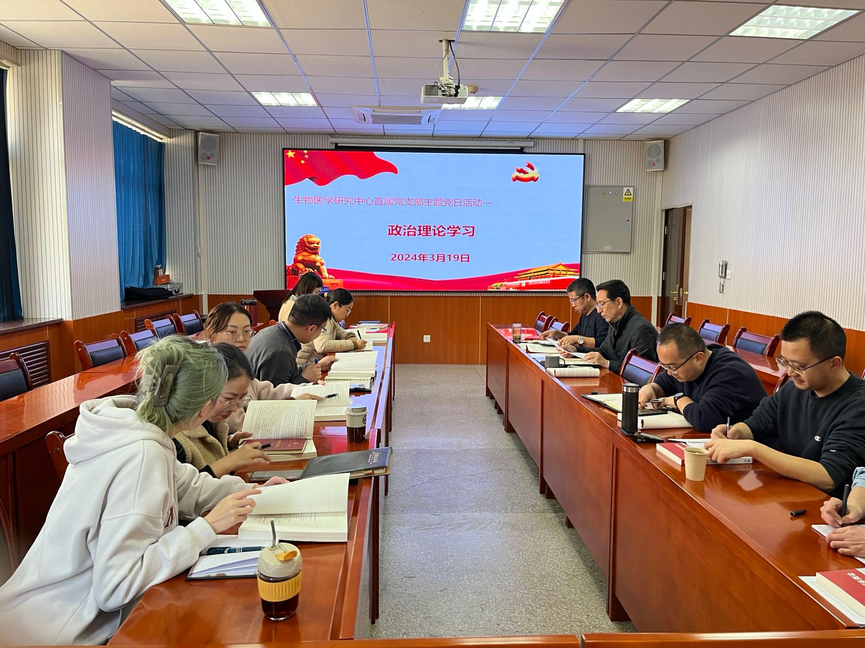 3月19日下午,生物研究中心直属党支部开展3月主题党日活动,集中学习《中华民族共同体概论》教材,活动由支部副书记、中心主任柏家林主持,中心所有教职工参与学习。