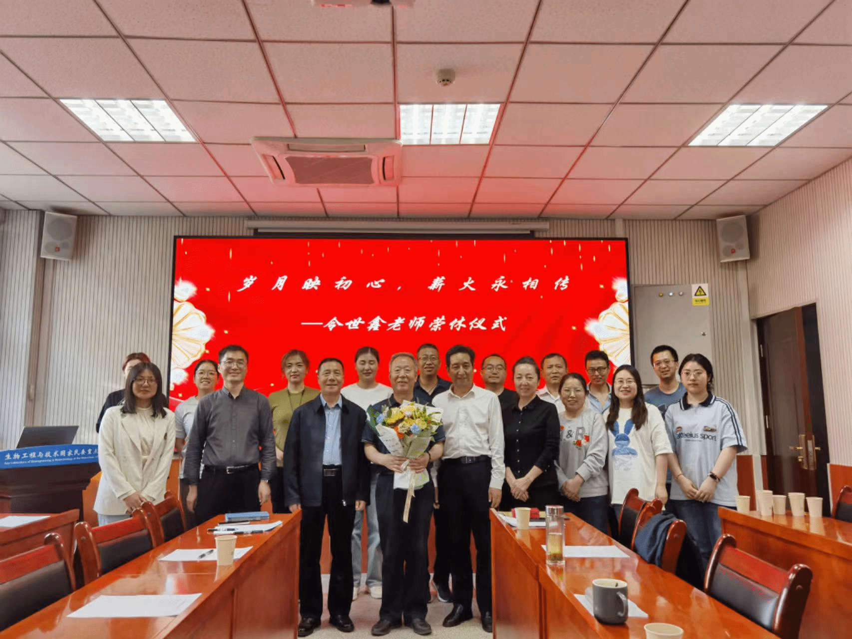 离退休工作处,党委教师工作部、人事处领导,生物医学研究中心全体教职工,学生代表参加仪式。仪式由中心直属党支部书记哈玉梅主持。
