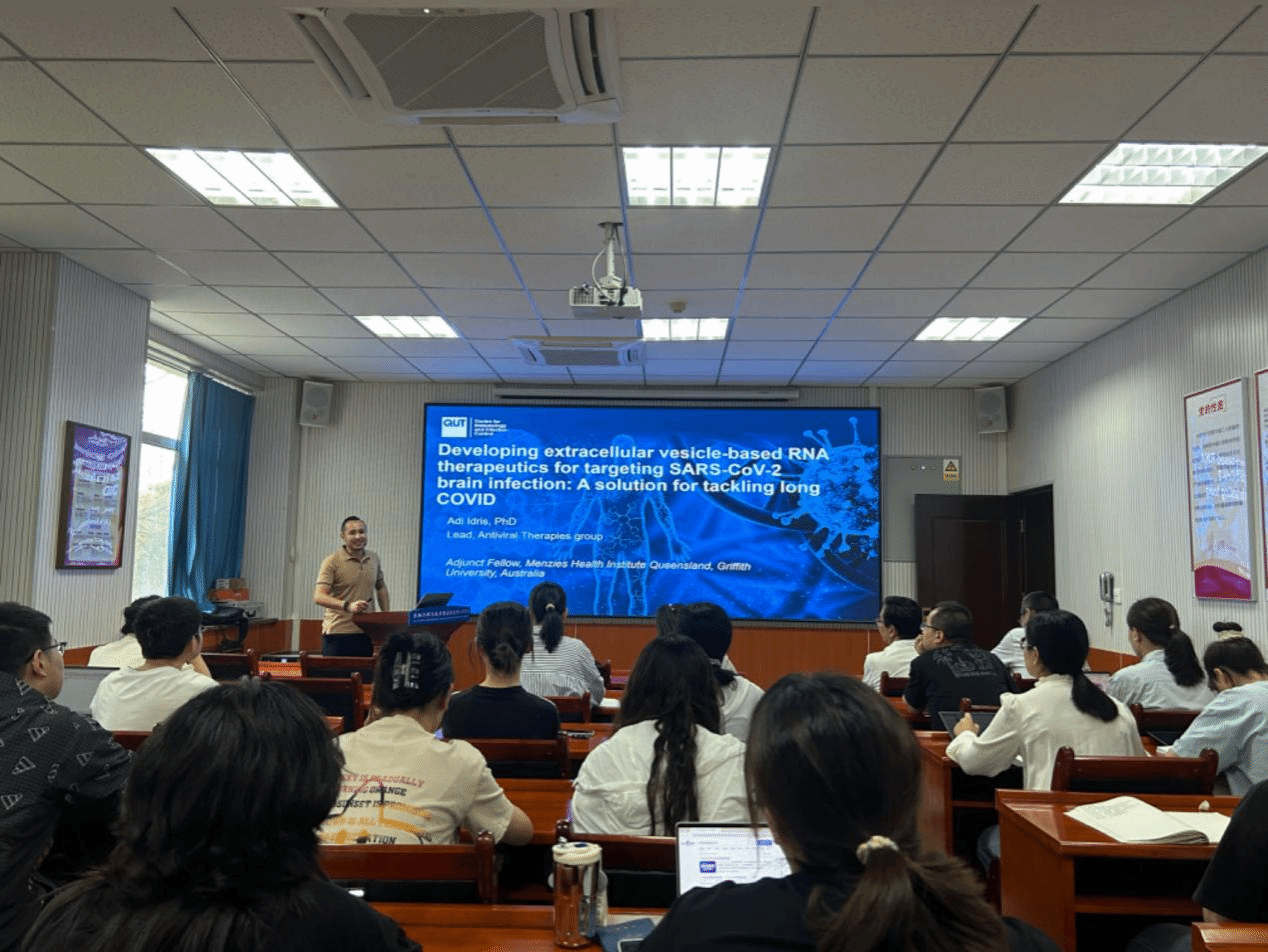 师生做了题为《基于RNA靶向治疗SARS-CoV-2脑感染的胞外囊泡研发:针对长新冠综合征的解决方法》的学术报告,生物医学研究中心教师、研究生30余人参加了本次学术报告。