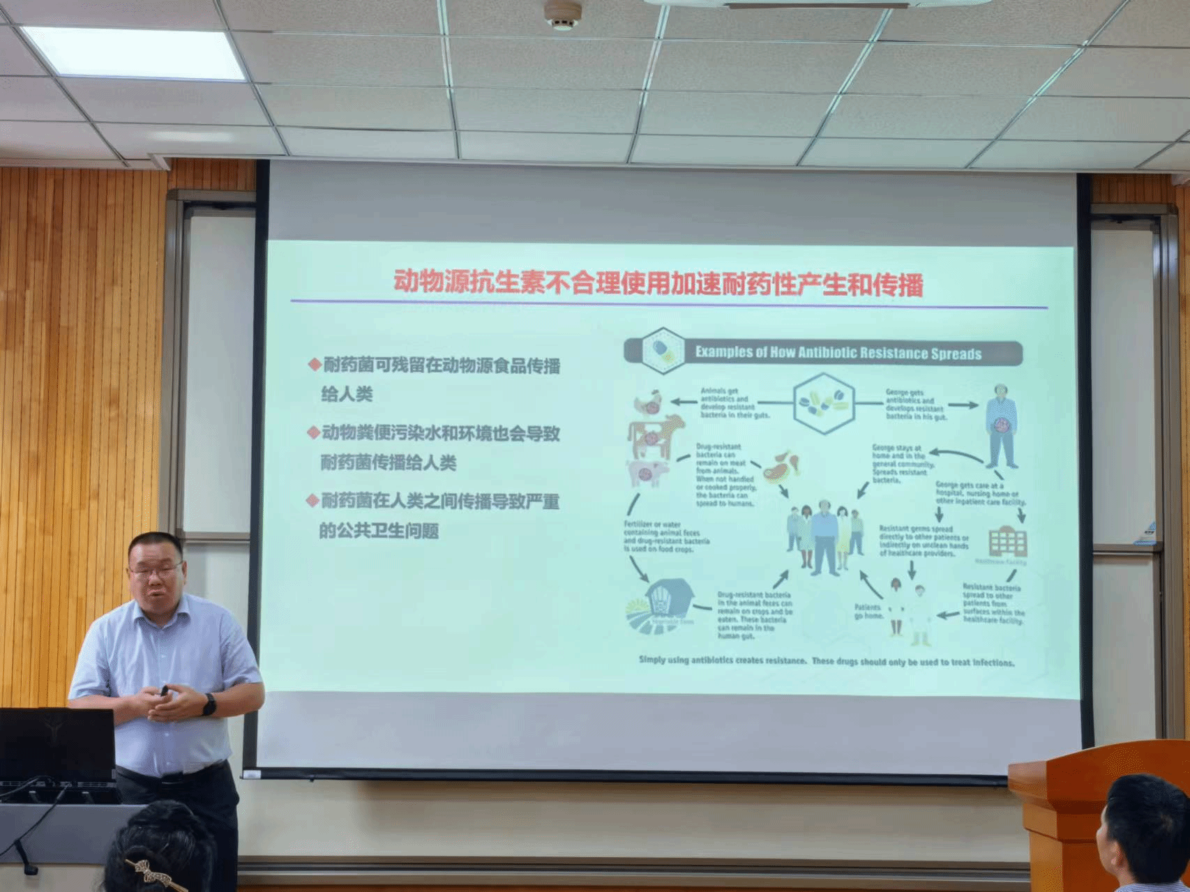 学术报告中,王胜义研究员以兽药与抗生素减量化背景、中兽药、天然产物与细菌感染机制为切入点,以白头翁皂苷提取物注射液等药品为案例分析中兽药在动物疾病治疗过程中的抗生素替代效果,为中兽药的开发与抗生素减量化研究提供了新思路和新方法。