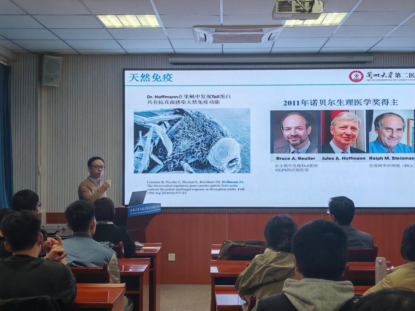 邀请,兰州大学第二医院副研究员杨靖于2024年10月30日来校开展学术交流,并在西北新村校区生物工程楼二楼会议室作了题为“宿主基因对病原微生物感染与传播的影响”的学术报告。生物医学研究中心师生40余人参加了报告会。报告会也是中心“2024年研究生学术月”系列活动之一。