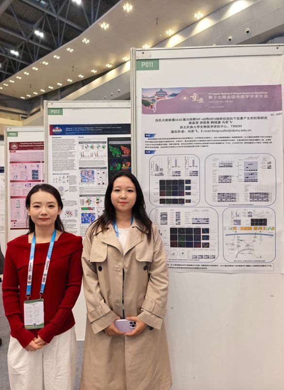 2025年11月6日至9日,由中国免疫学学会主办的“第十七届全国免疫学学术大会”在重庆召开。生物医学研究中心病原感染机制与CHO表达创建团队青年教师杨妍梅和文艳巧带领研究生6名硕士研究生参加了此次会议并做壁报展示。