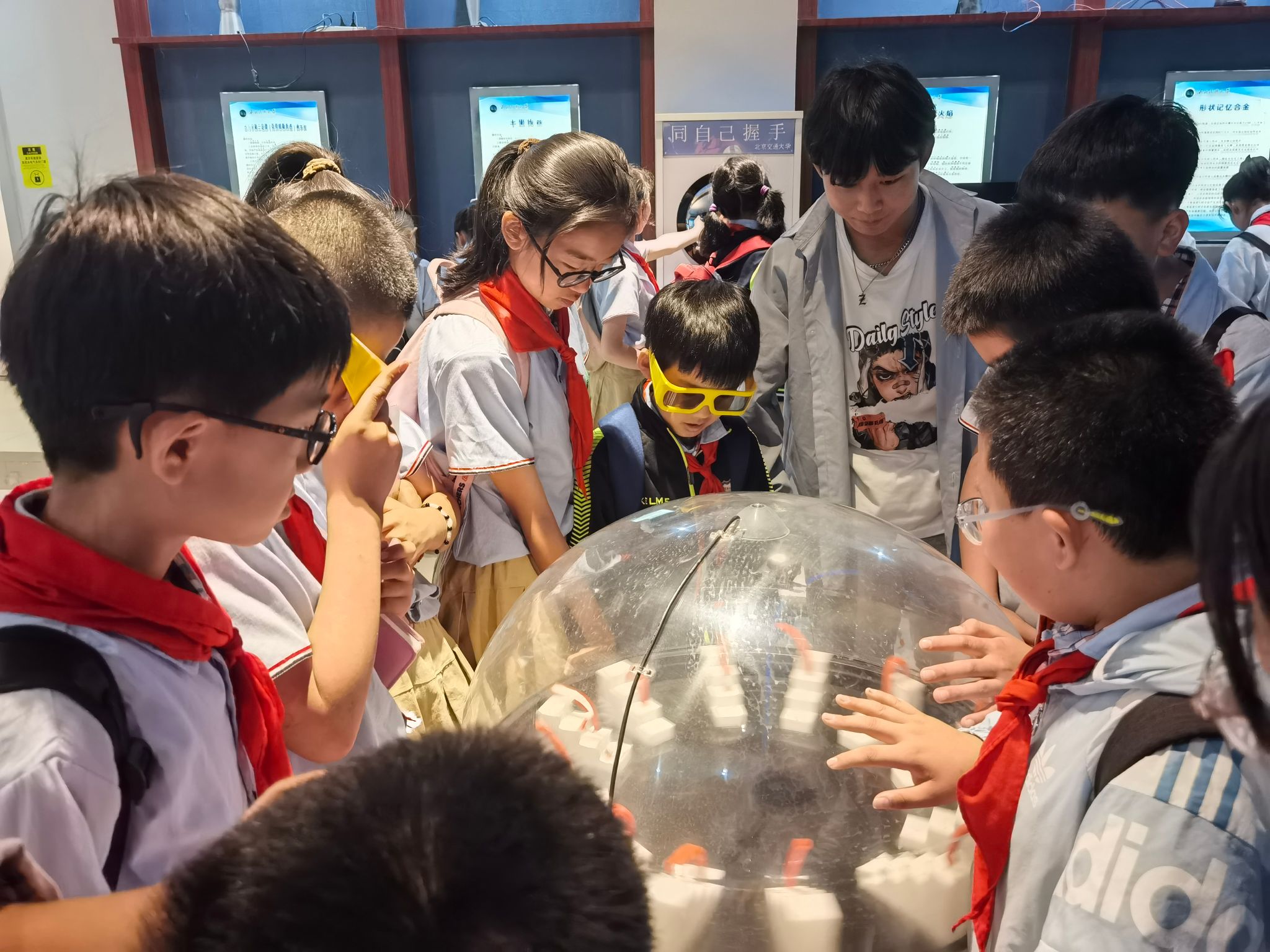 活动中,科普工作者讲解了物理演示设备现象、原理以及机械发展史、机械零部件构造、钳工、焊工、电子电工等知识。在科普基地,同学们还参与、体验了趣味演示展品,观摩了创新机器人表演。