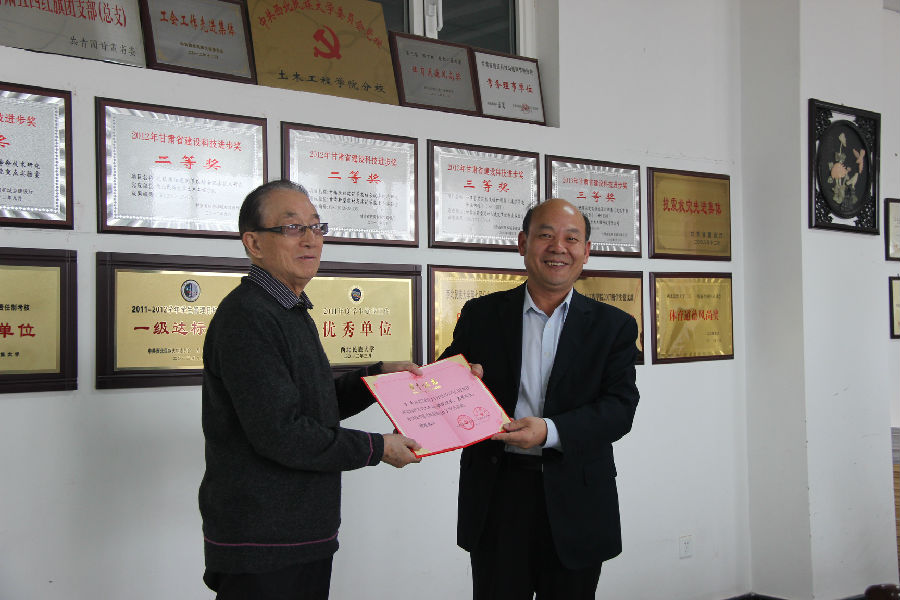 原校长赵德安向土木工程红黑游戏 名誉院长吕平教授颁发荣誉证书