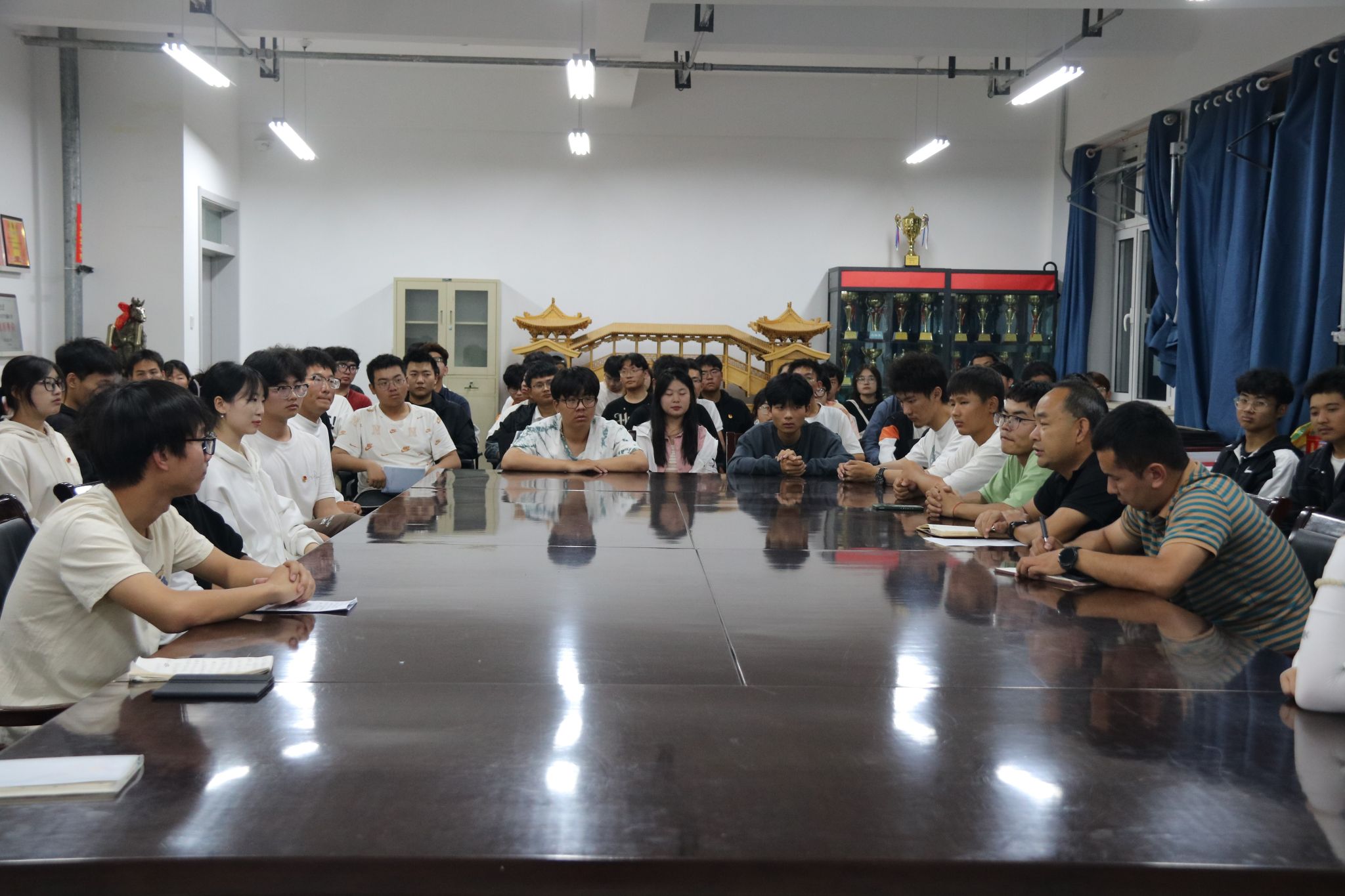 党委副书记马广临、学生管理办公室副主任祖立亚尔·扎克、2024年暑期“三下乡”社会实践团成员及学生代表参加了会议。