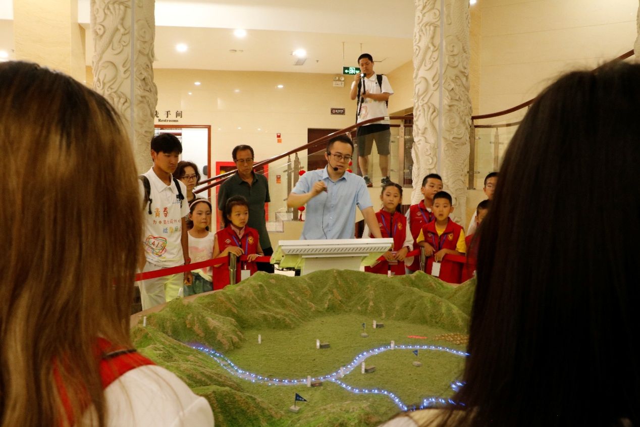 图 3 实践团在沙盘前听讲解 摄:王嘉乾
