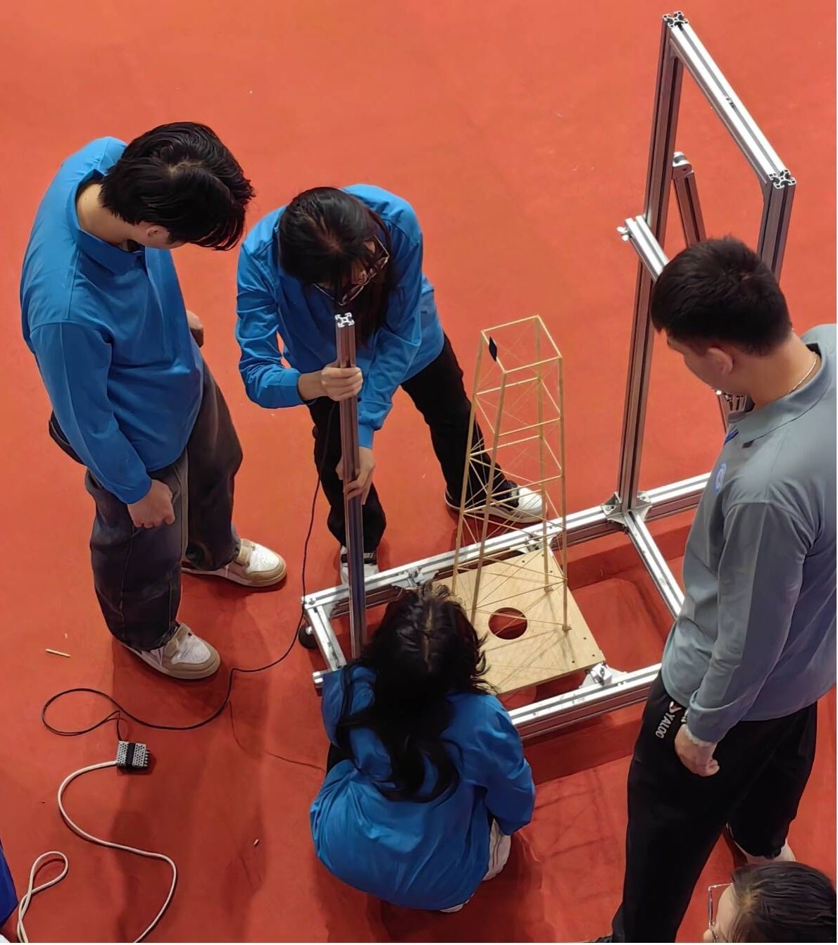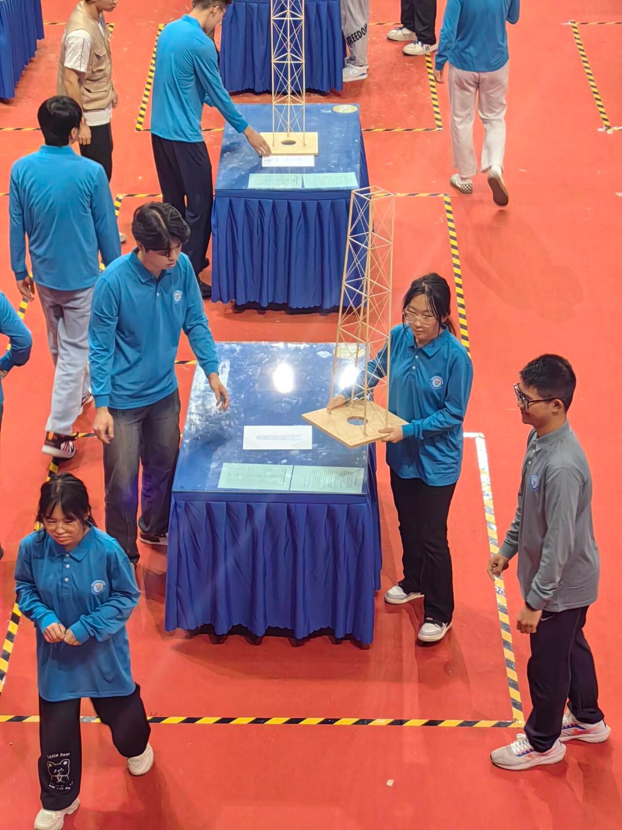 本次大赛以广州塔为背景,赛题为《考虑水平振动的高耸塔式结构设计与模型制作》,以高耸塔式结构为基本单元,要求参赛者针对水平荷载、竖向荷载及水平振动复杂工况对其进行受力分析、结构设计、模型制作及加载试验。参赛队现场经过12小时的材料选择与处理、理论分析、模型制作、模型安装与检测、现场答辩、加载测试等环节,最终完成比赛。土木学子秉持着坚持不懈、积极进取、团队协作、勇于创新的精神获得了二等奖的优异成绩,展现了红黑游戏