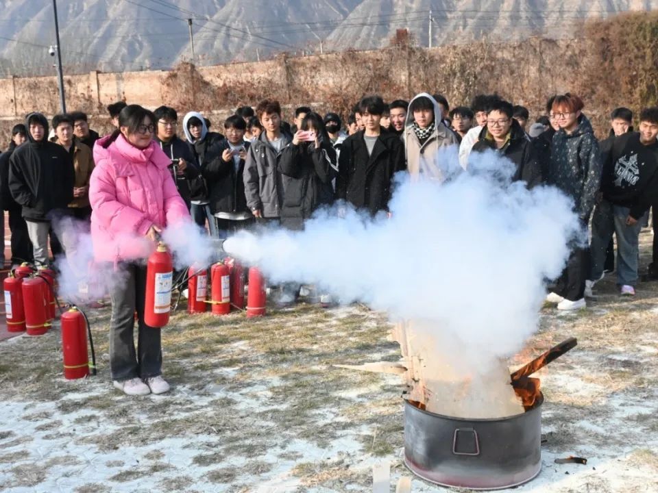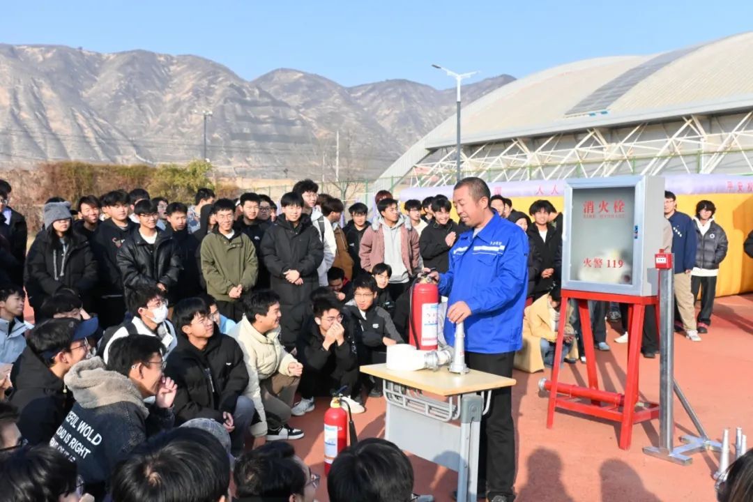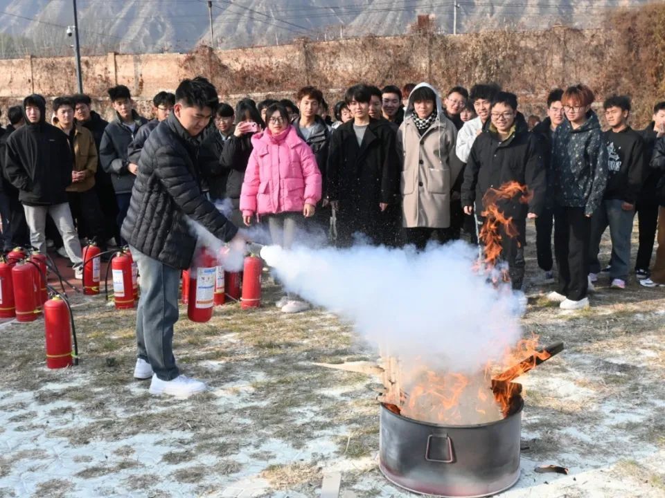 演练前,保卫处消防人员向同学们详细讲解了火灾的成因、预防措施、初期火灾扑救方法以及逃生自救技巧等知识,并现场演示了灭火器、消火栓等消防器材的正确使用方法,让同学们对消防设备和消防知识有了更直观的认识和了解。
