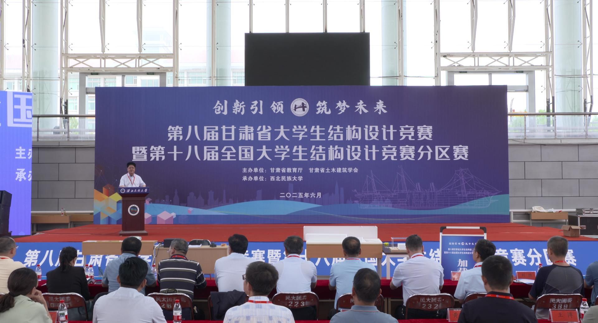 院长蔺鹏臻在致辞中指出,甘肃省结构设计大赛的行业影响力持续攀升,已发展成为培育高素质工程创新人才的重要育人平台。他希望各高校坚守立德树人初心,以赛事为契机深化产教融合与创新人才培养。同时殷切期待甘肃学子在全国竞赛中实现新的突破,以精湛专业技艺斩获更高荣誉,充分展现甘肃土木教育的卓越风采与育人成效。