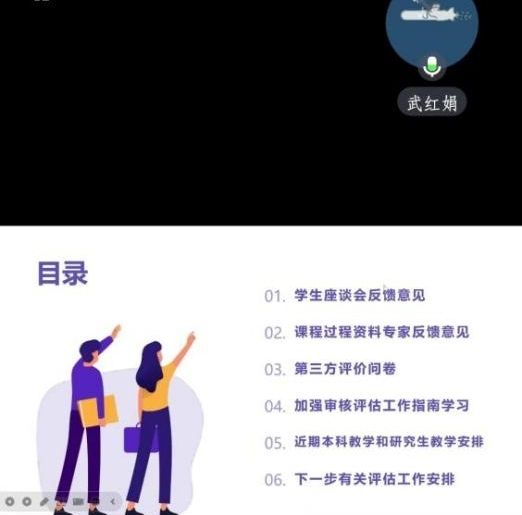 关于开展第三方评价问卷调查的通知》的调查结果,强调要加强学习“审核评估—工作指南”。会上武红娟针对评估过程资料检查中发现的问题提出了具体的整改措施,并要求全体教师于5月10日前完成整改工作。
