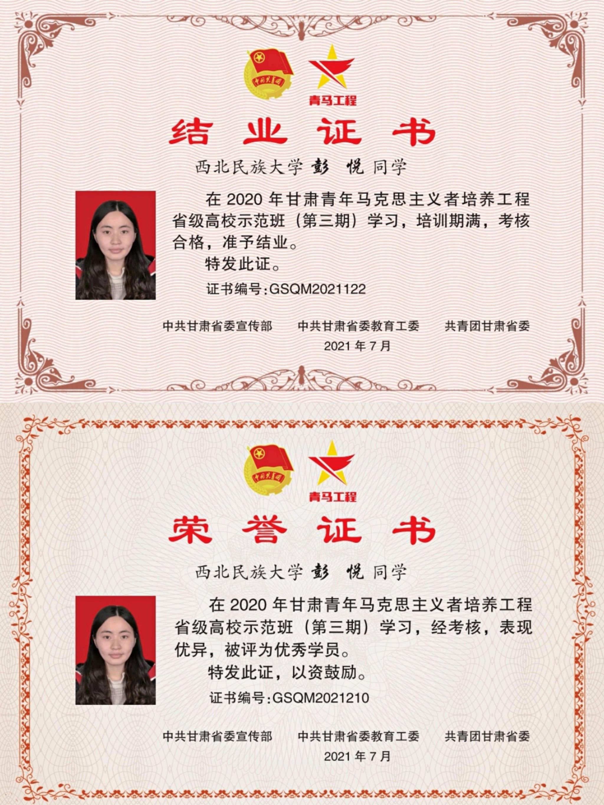 2021级数学专业研究生彭悦同学还荣获了2022年“甘肃省大学生年度人物提名”(全省仅15名)。