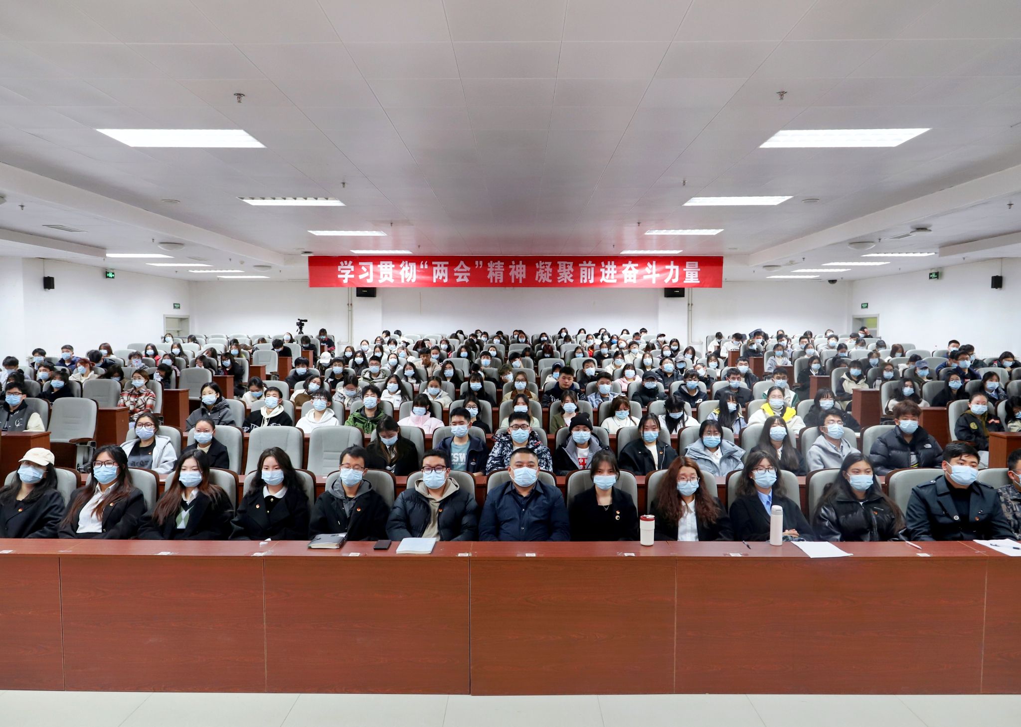 在收看盛会直播时,李克强总理的报告使现场师生倍感振奋、深受鼓舞,大家不由地热烈鼓掌,并不时拿笔记下要点和心得感悟。听完报告后,大家纷纷表示要积极带动身边的人参与到两会精神的学习和具体实践中去,用实际行动回答时代之问。